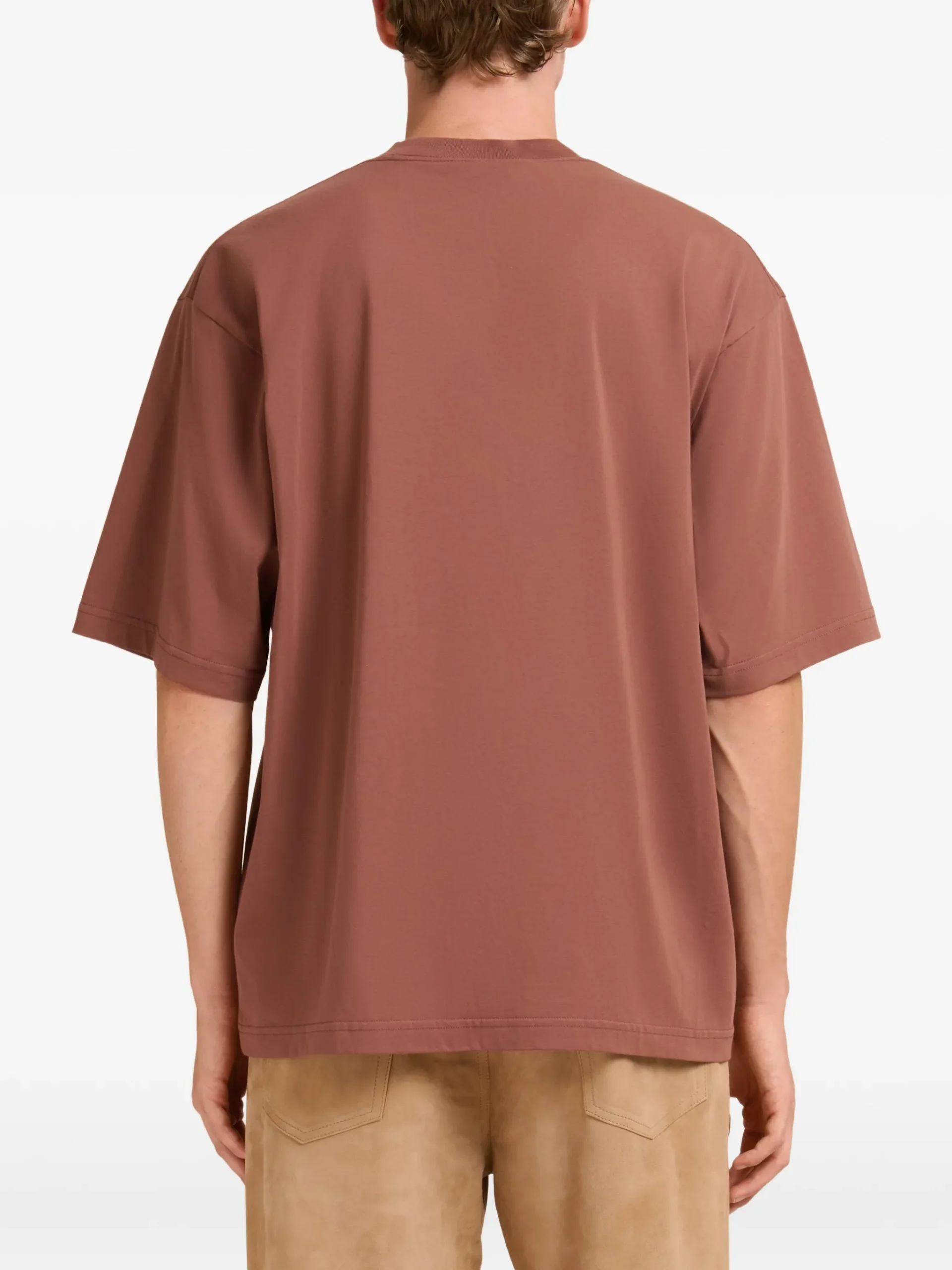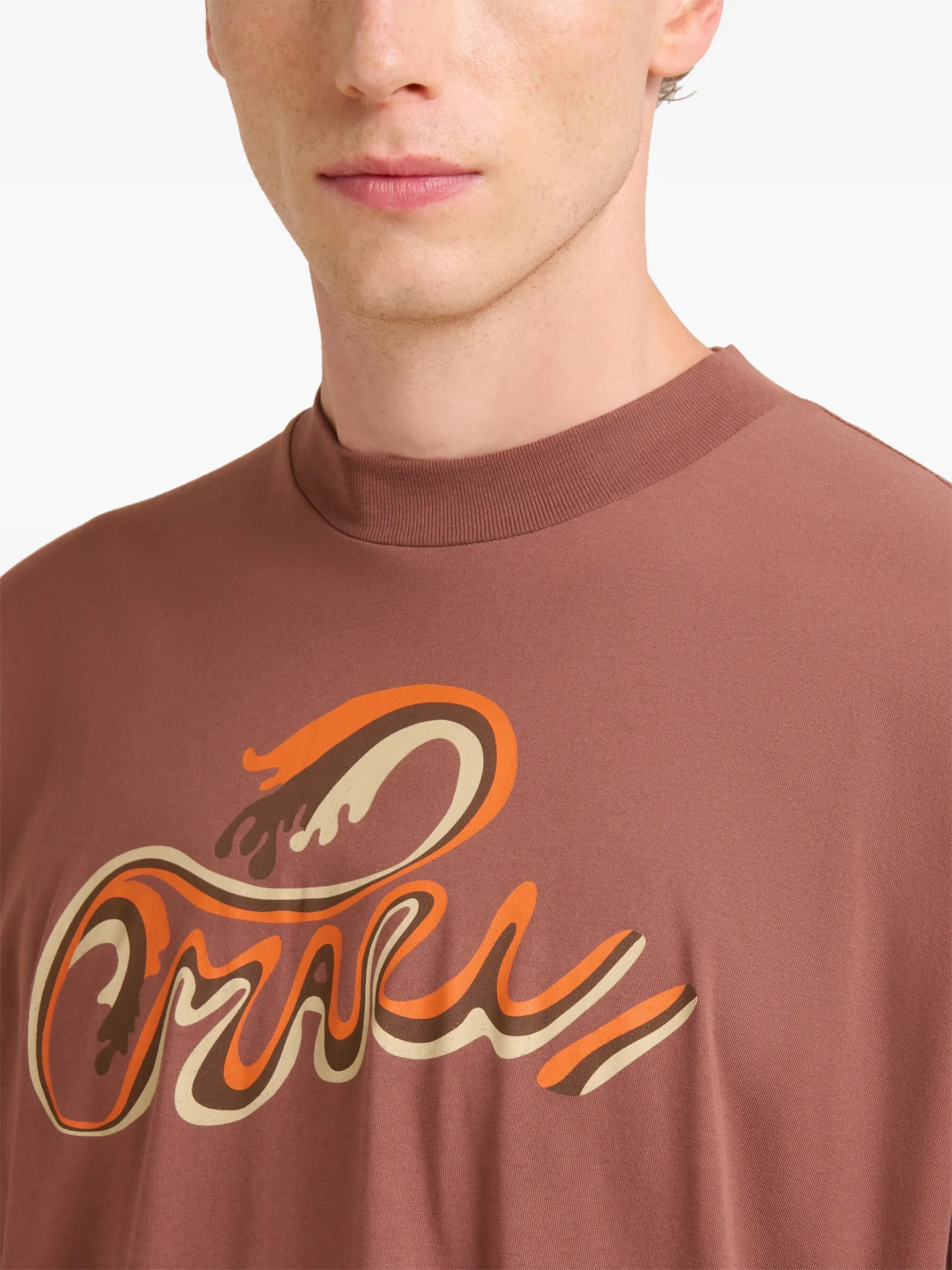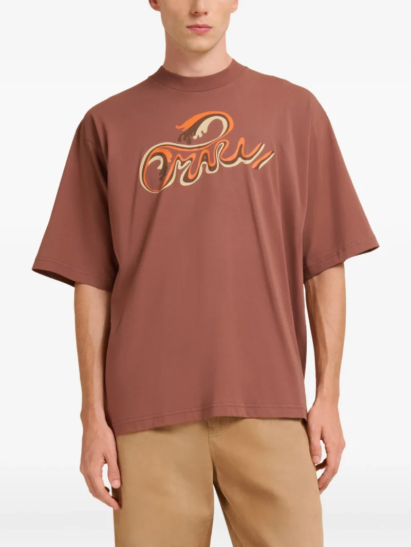 Tricou Marni logo-detail short-sleeve maro, din bumbac, cu guler rotund, maneci scurte si imprimeu logo pe fata. 100% bumbac