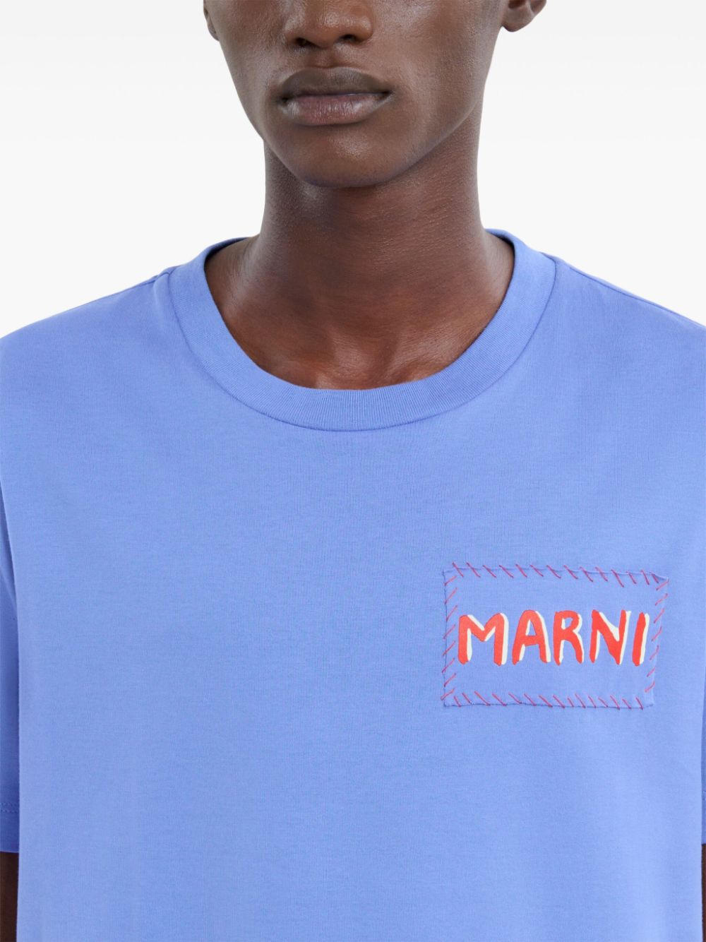 Tricou Marni Logo Patch albastru, din bumbac, cu guler crewneck, maneci scurte, brant aplicat la piept cu logo Marni imprimat si tiv drept. Potrivit pentru sezonul primavara/vara. 100% bumbac.
