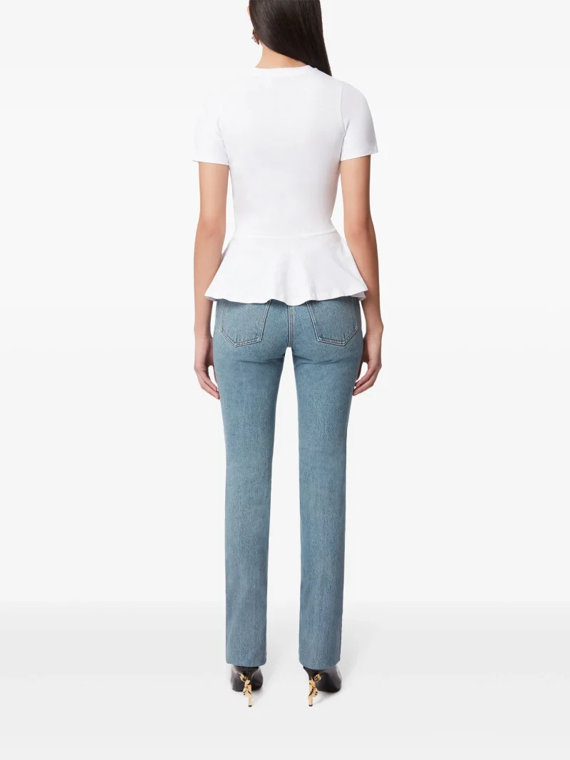 Tricou Nina Ricci Bow Detailed alb, jerseu stretch, guler rotund si tiv drept. 100% bumbac