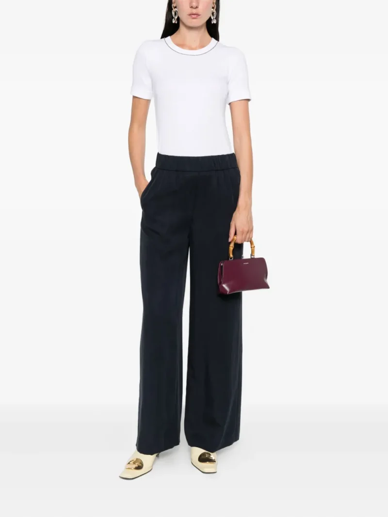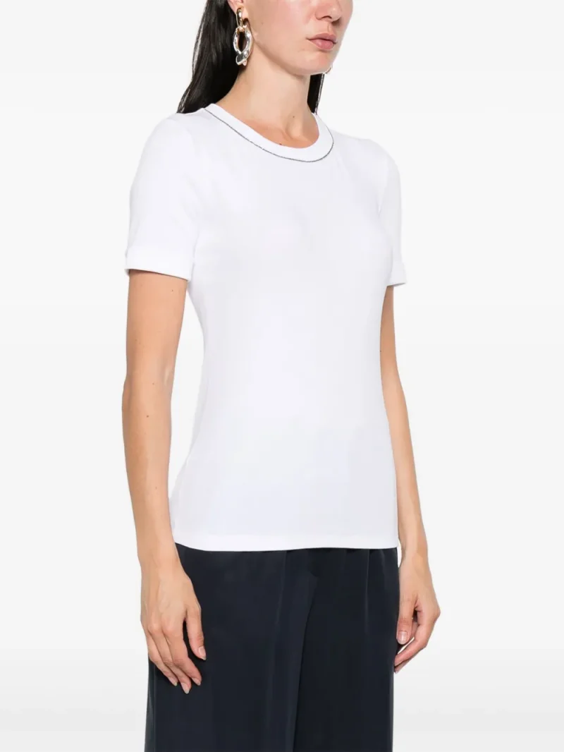 Tricou Peserico din bumbac, cu guler rotund decorat cu chain-link iconic Peserico, maneci scurte, croiala stramta si tiv drept. Potrivit pentru sezonul toamna/iarna. 94% bumbac; 6% elastan.