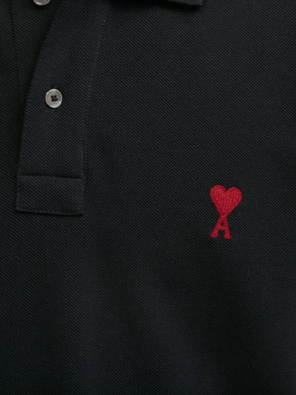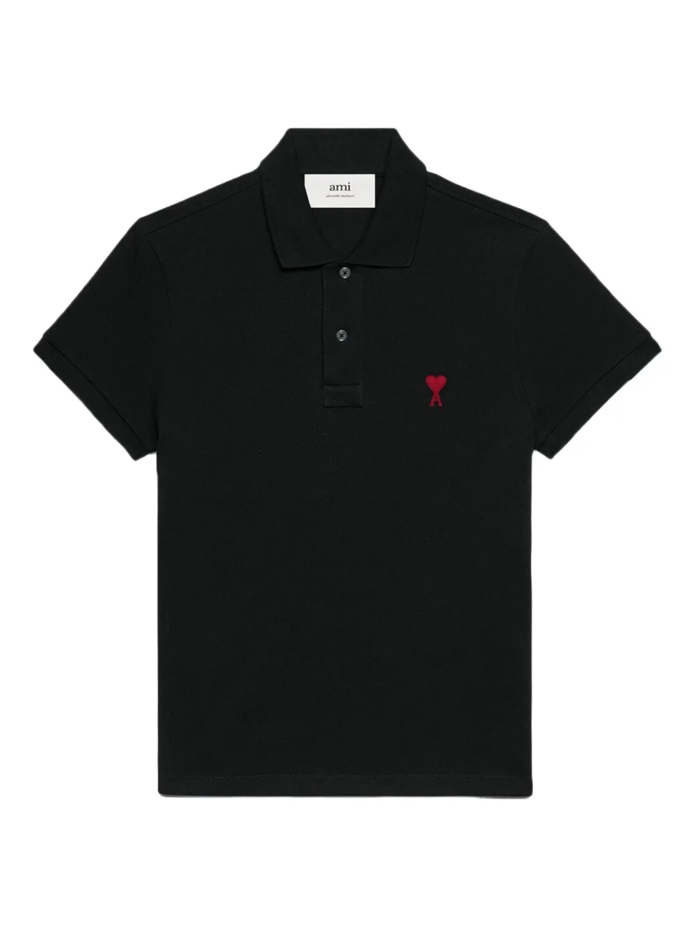 Tricou polo AMI Paris negru, inchidere cu nasturi, logo pe piept, maneci scurte si tiv drept. Potrivit pentru sezonul primavara/vara. Bumbac organic 100%.