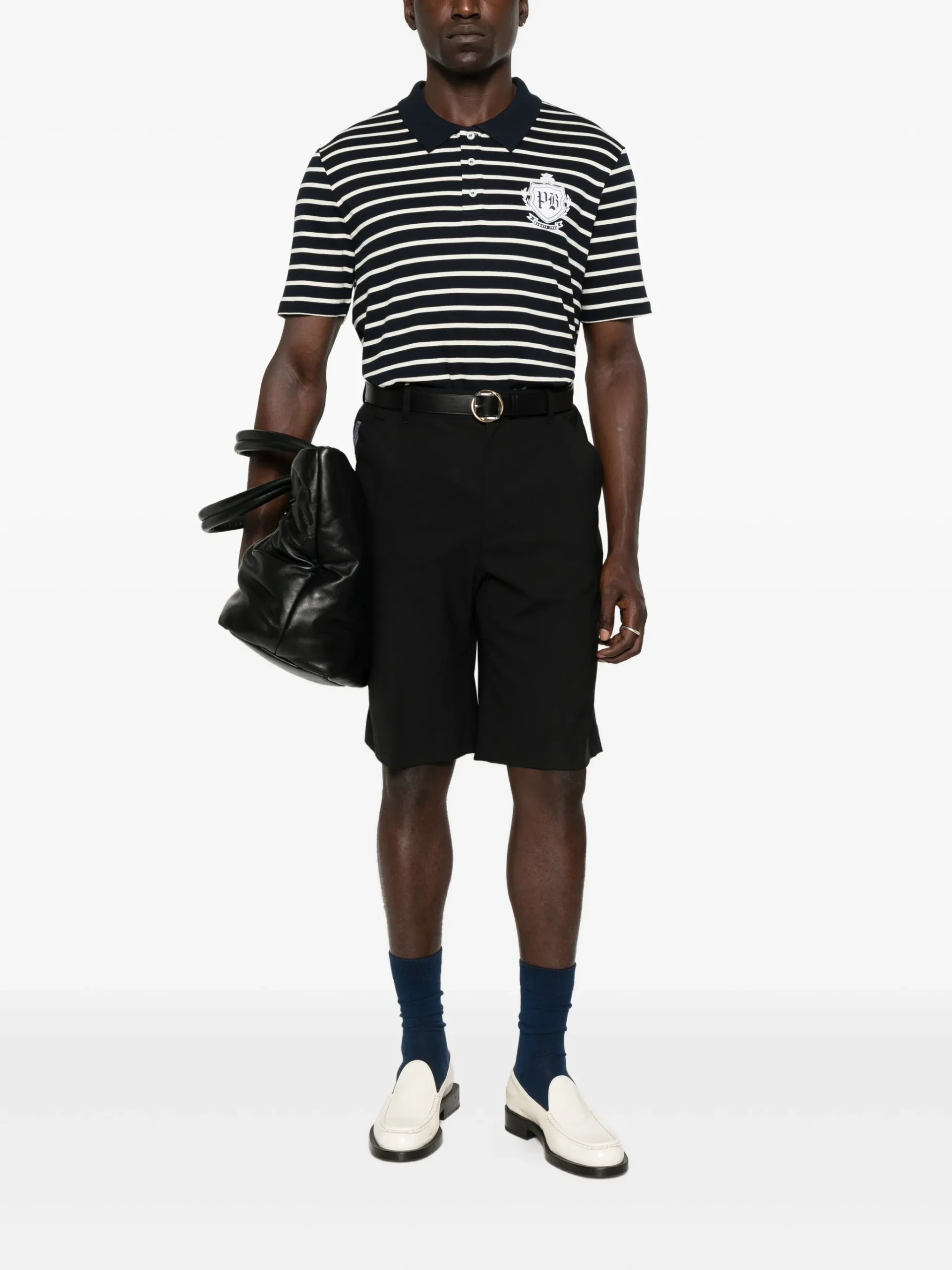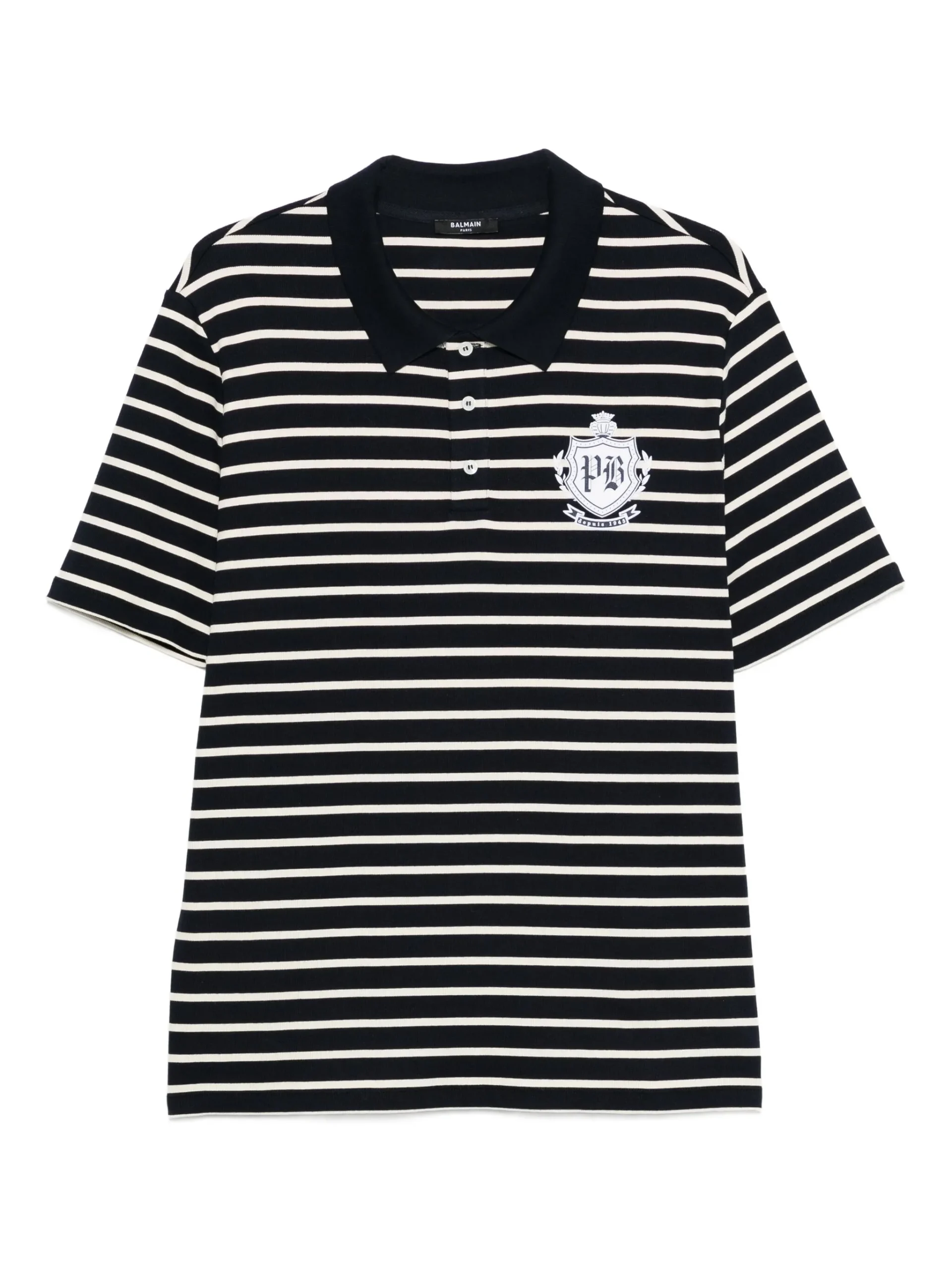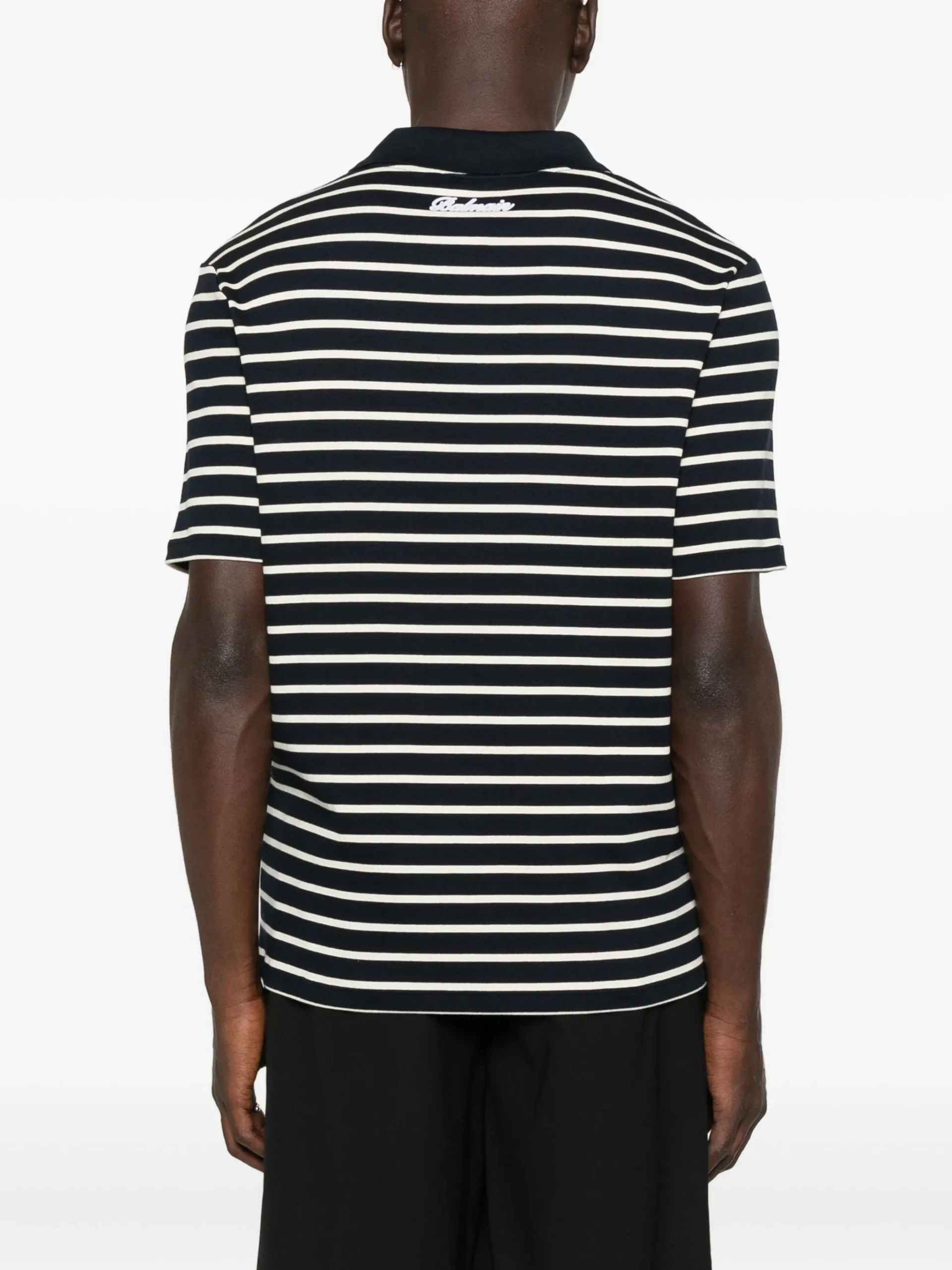 Tricou polo Balmain striped-pattern alb-negru, guler clasic, model in dungi, nasturi pe partea din fata, maneci scurte.97% bumbac 3% elastan