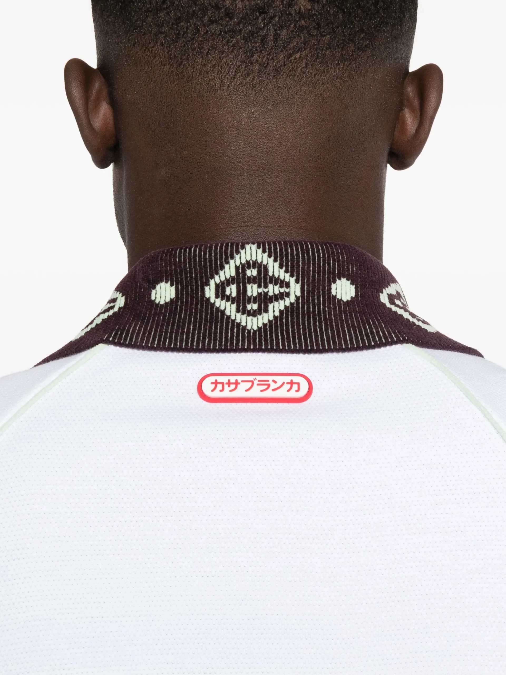 Tricou polo Casablanca logo-patch alb, guler clasic, inchidere cu nasturi, logo Casablanca la spate, maneci scurte si tiv drept.100% bumbac
