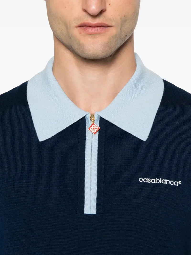 Tricou polo Casablanca zip-up albastru, maneci scurte, inchidere cu fermoar, logo pe partea din fata si guler clasic. Potrivit pentru sezonul primavara/vara.100% lana