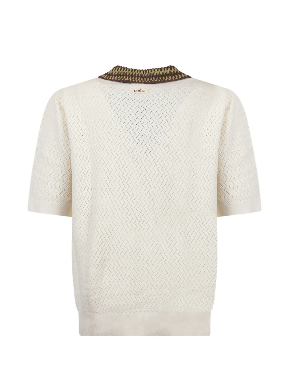 Tricou polo Drole De Monsieur Short-Sleeve bej, realizat din tricot ajurat, cu guler crosetat, inchidere partiala cu nasturi, maneci scurte si terminatii ribbed. Potrivit pentru sezonul primavara/vara. 100% bumbac.