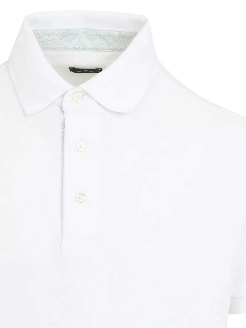 Tricou polo ETRO Cotton alb, inchidere cu nasturi, guler clasic, maneci scurte si tiv drept. Potrivit pentru sezonul primavara/vara.100% bumbac