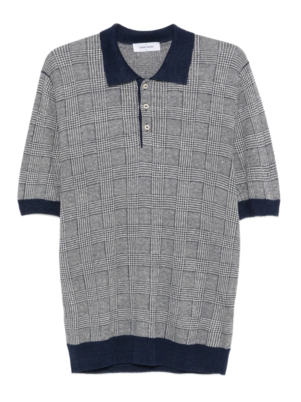 Tricou Polo Gran Sasso Checked bleumarin, cu guler polo, inchidere partiala cu nasturi, maneci scurte, grafica Checked in tesatura si tiv ribbed. Potrivit pentru sezonul toamna/iarna. 32% bumbac; 68% in.