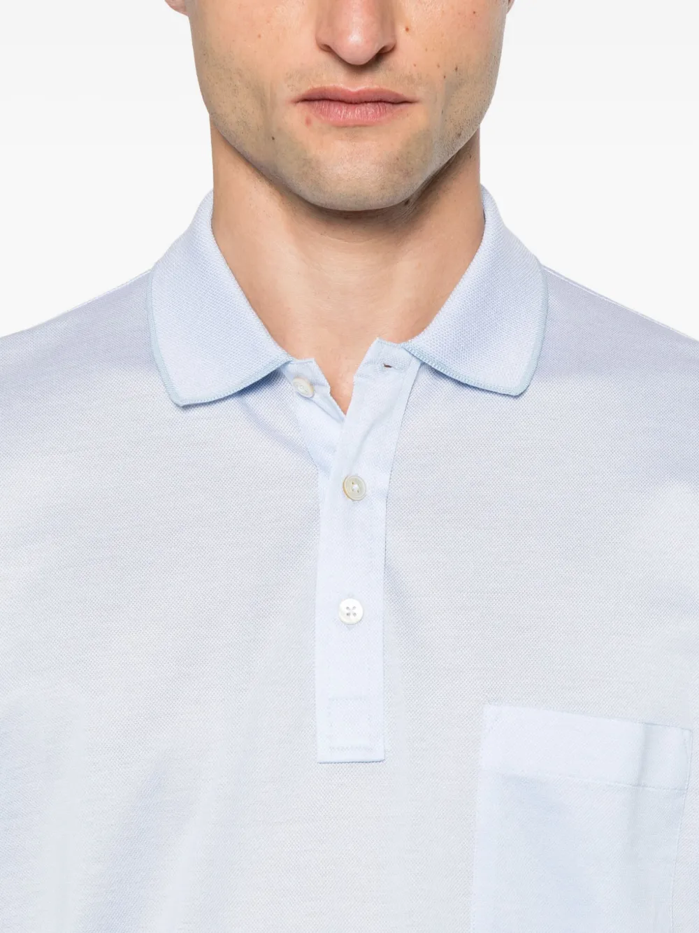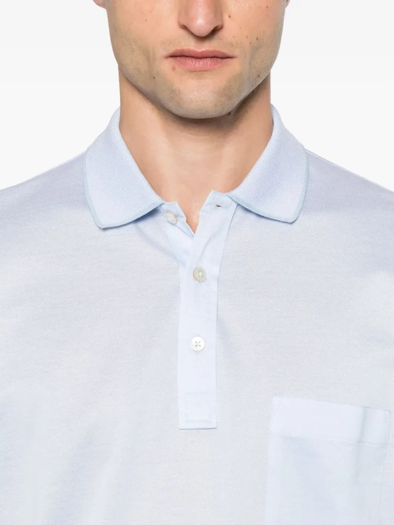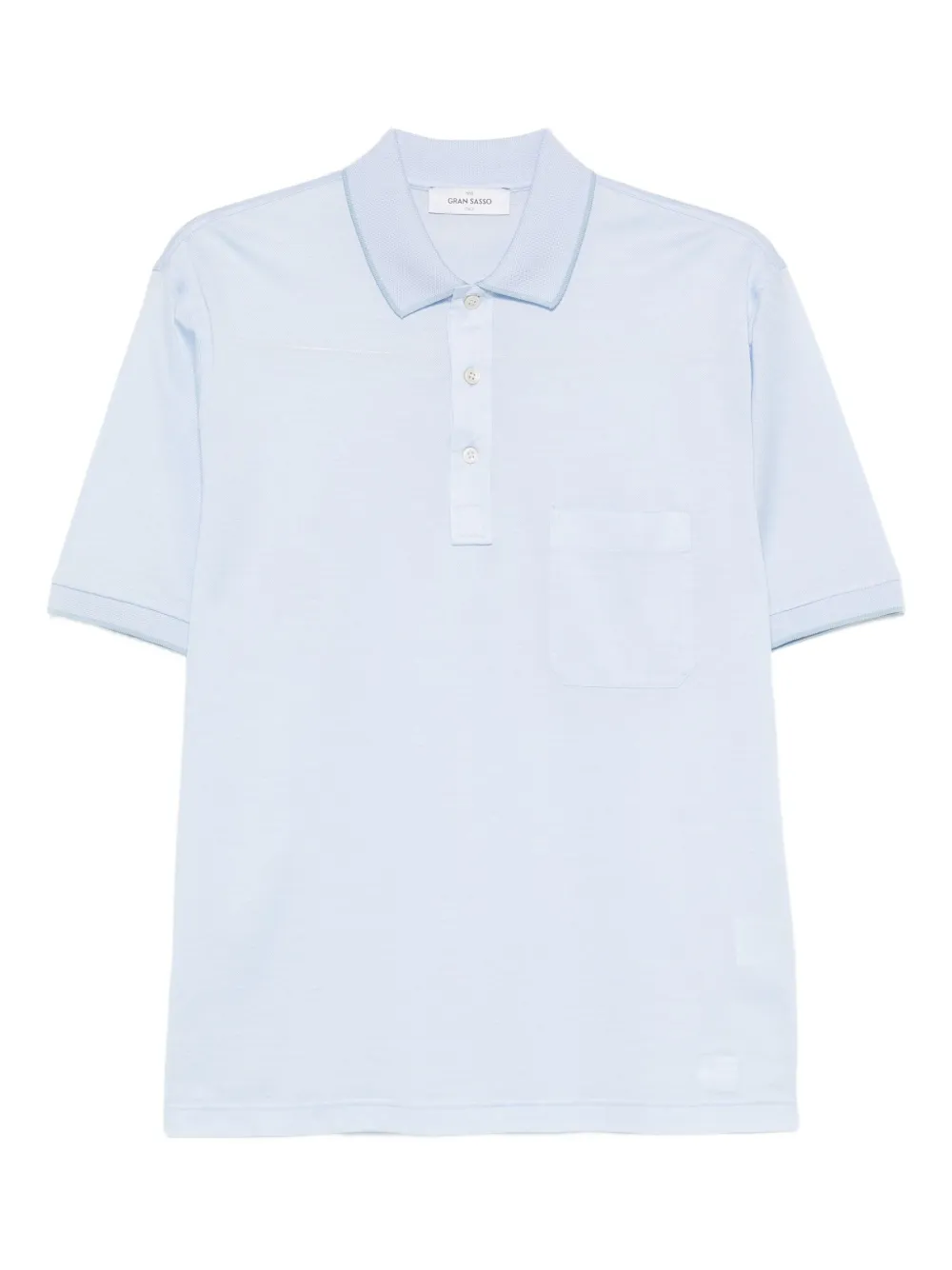 Tricou polo Gran Sasso Cotton albastru, din bumbac, cu guler polo, inchidere partiala cu nasturi, maneci scurte, buzunar aplicat la piept si tiv drept. Potrivit pentru sezonul primavara/vara. 100% bumbac.