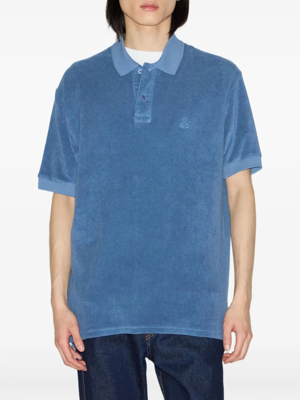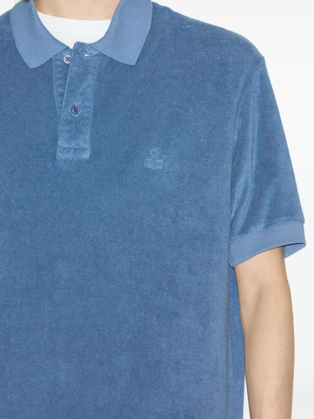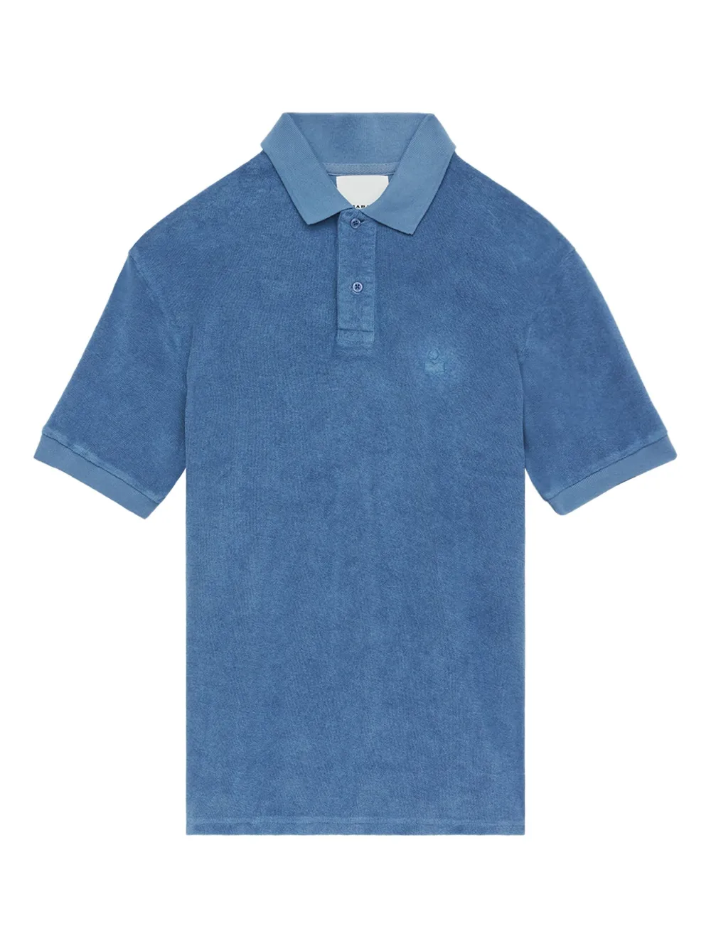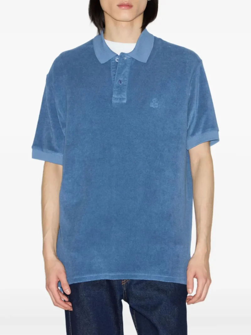 Tricou polo Marany Vafko albastru, realizat din bumbac terry, cu guler polo, inchidere cu nasturi, maneci scurte, logo Marant brodat la piept si tiv drept. Potrivit pentru sezonul toamna/iarna. 50% bumbac; 50% modal.