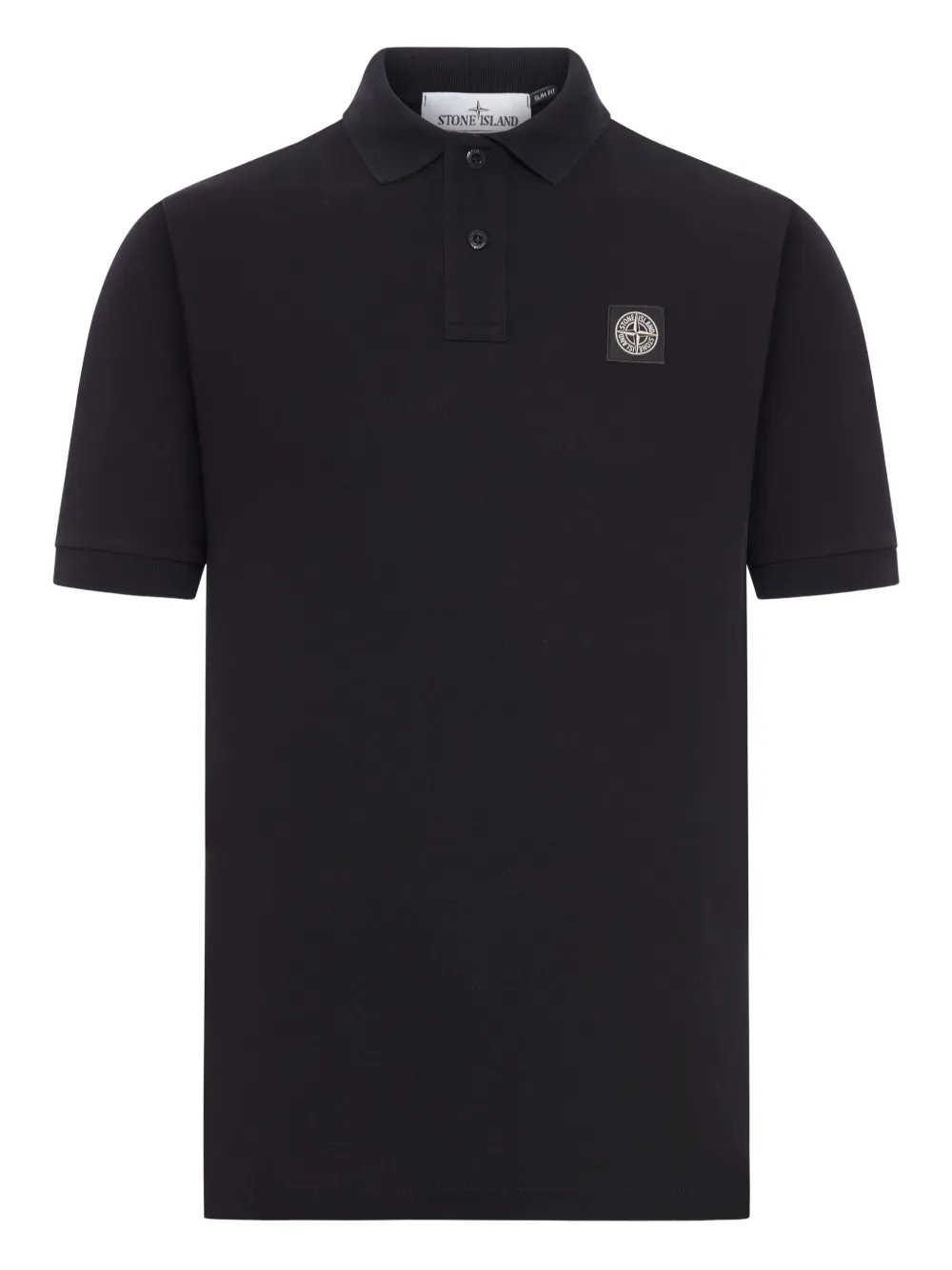 Tricou polo Stone Island Logo-Patch negru, cu guler polo, inchidere partiala cu nasturi, logo patch Compass Badge pe piept si tiv drept. Potrivit pentru sezonul toamna/iarna. 100% bumbac.