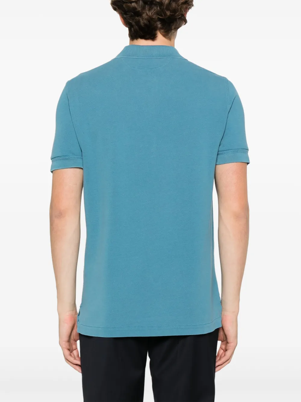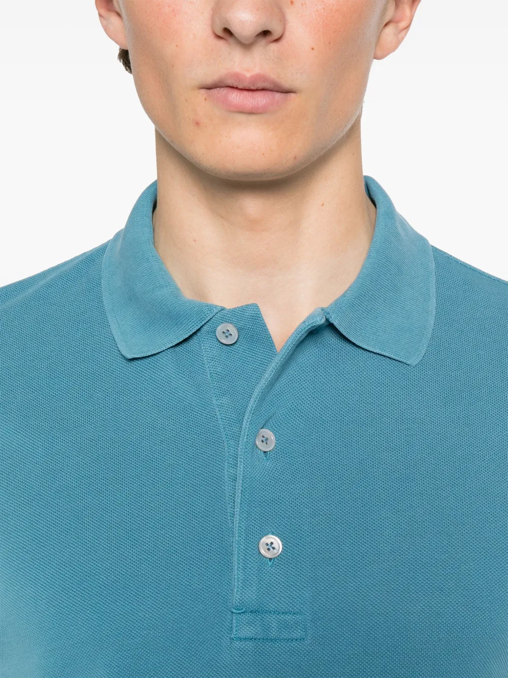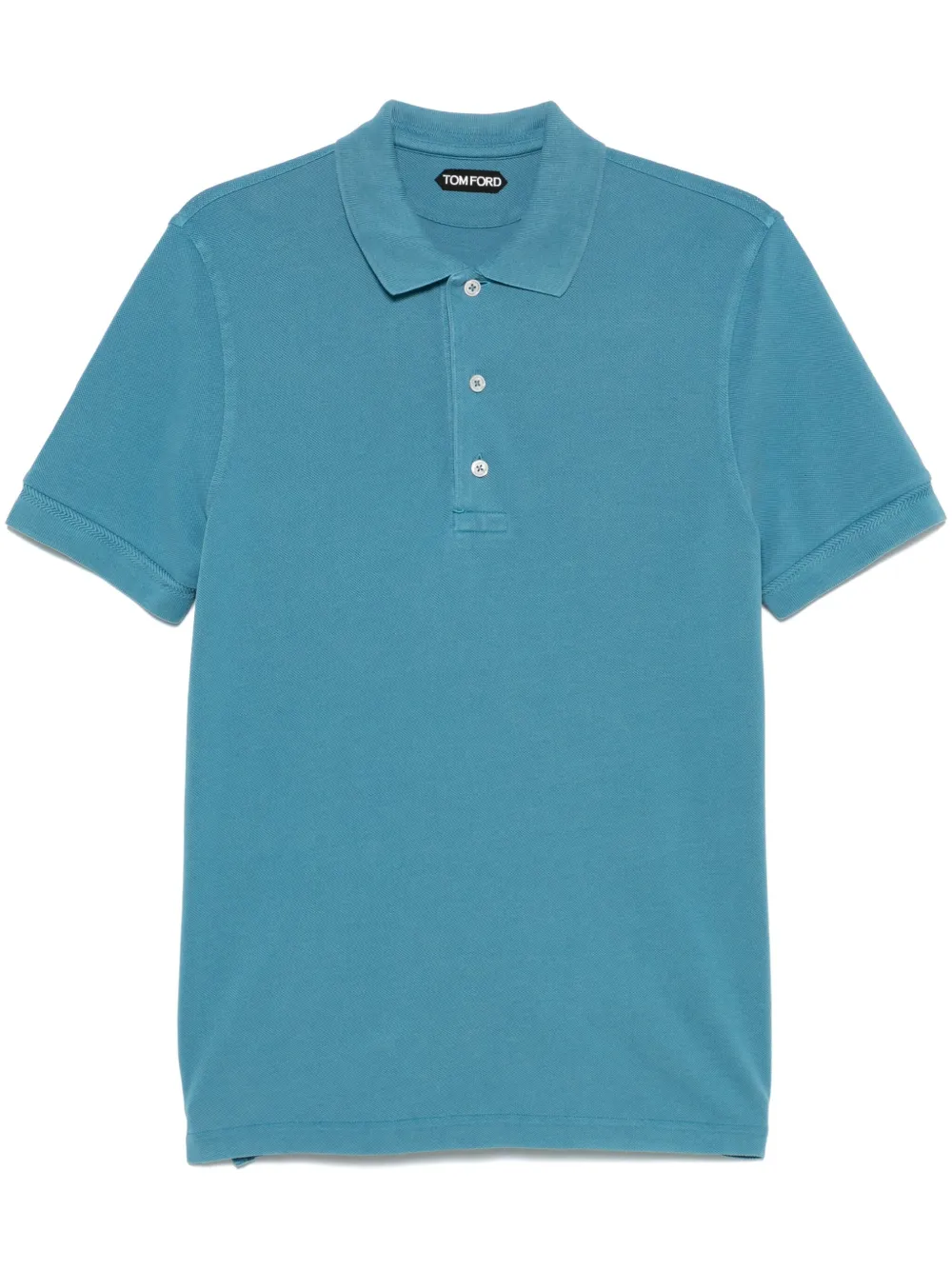 Tricou polo TOM FORD Piqué-Weave albastru, cu guler clasic, inchidere partiala cu nasturi, maneci scurte, mansete elastice, tesatura pique si tiv drept. Potrivit pentru sezonul primavara/vara. 67% lyocell; 33% bumbac.