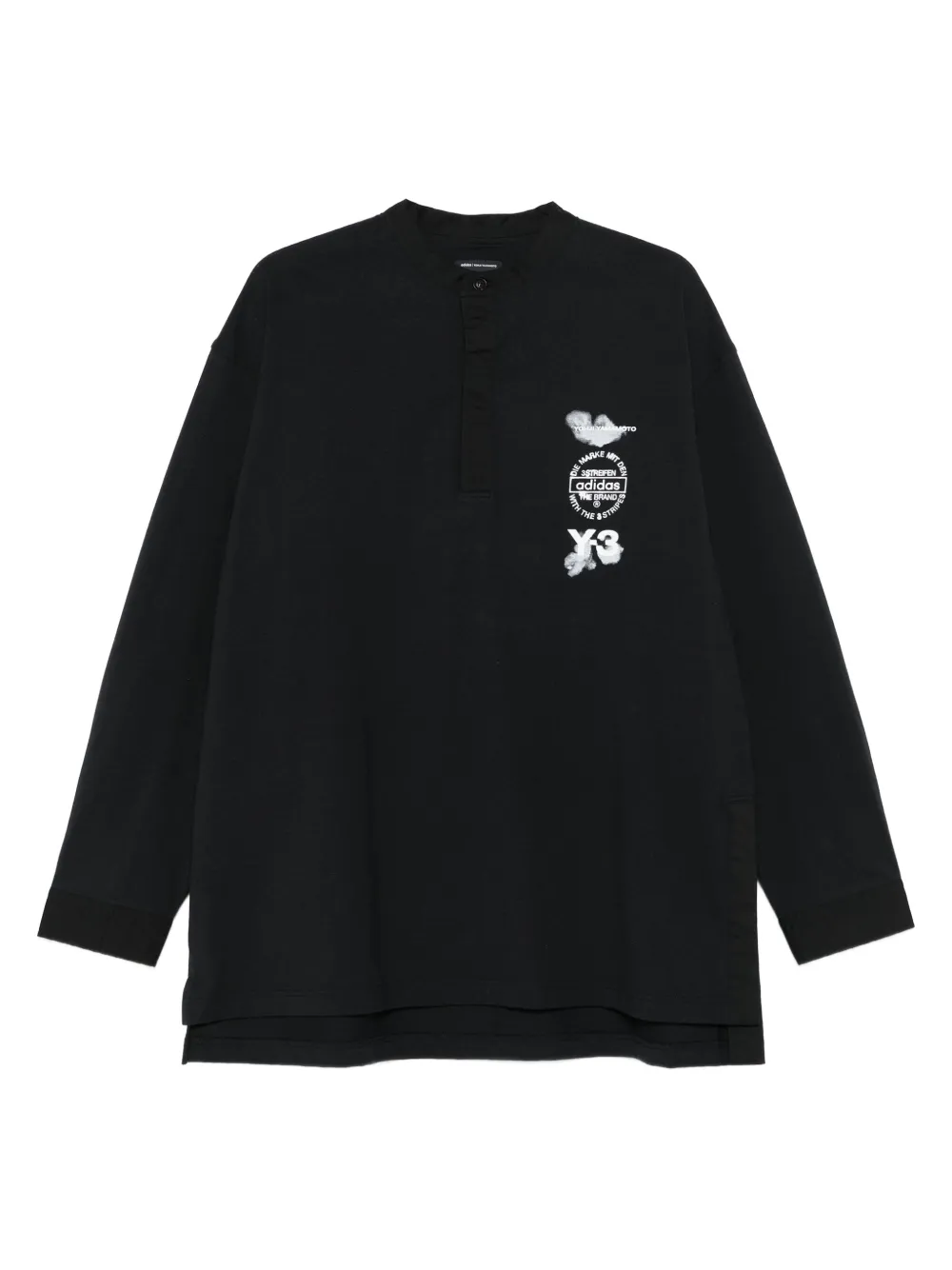 Tricou polo Y-3 Long-Sleeve negru, din bumbac pique, cu guler clasic polo, maneci lungi, logo Y-3 suprapus imprimat pe piept, croiala relaxata si tiv drept. Potrivit pentru sezonul toamna/iarna. 100% bumbac.