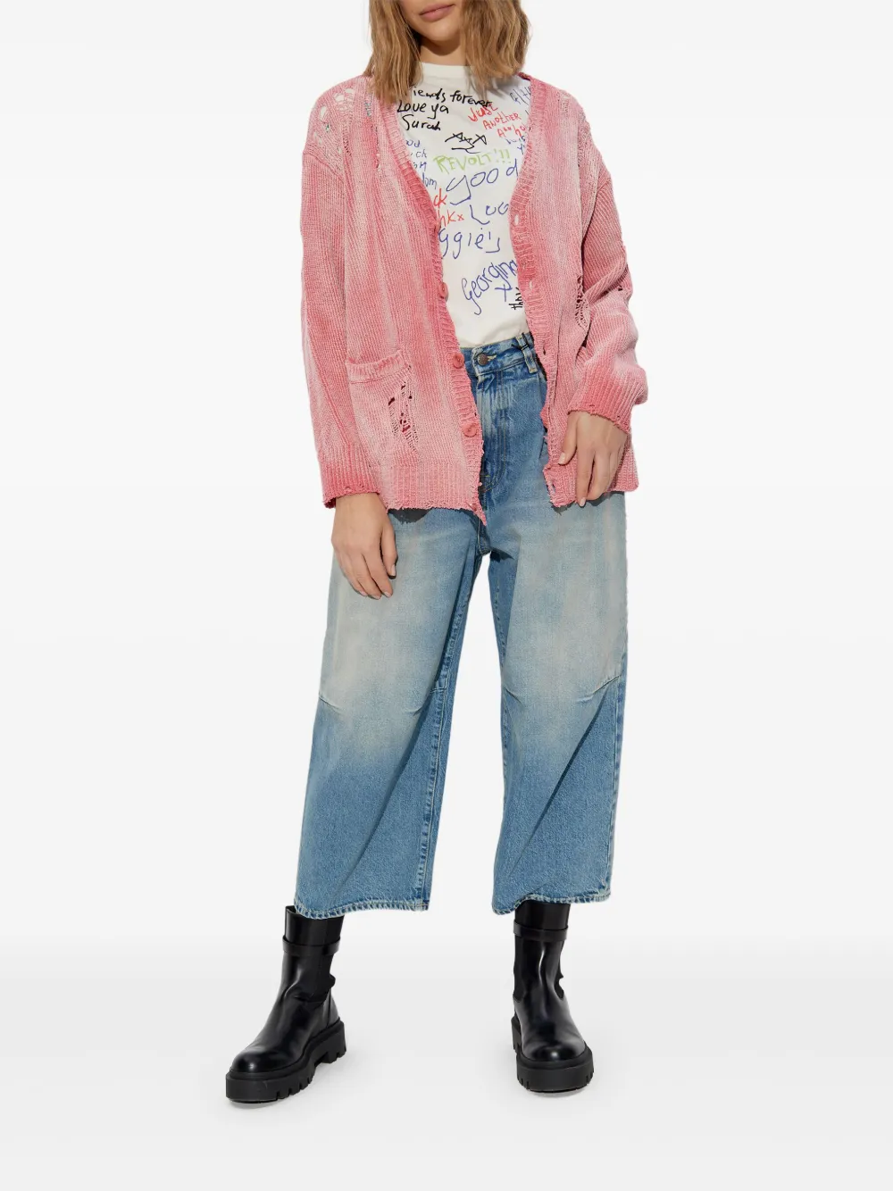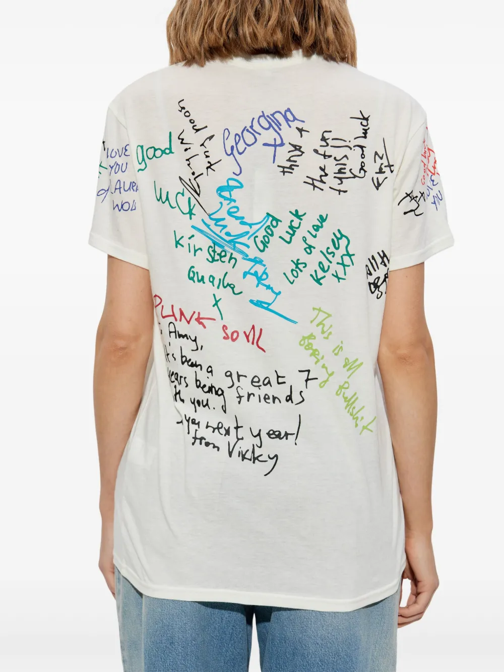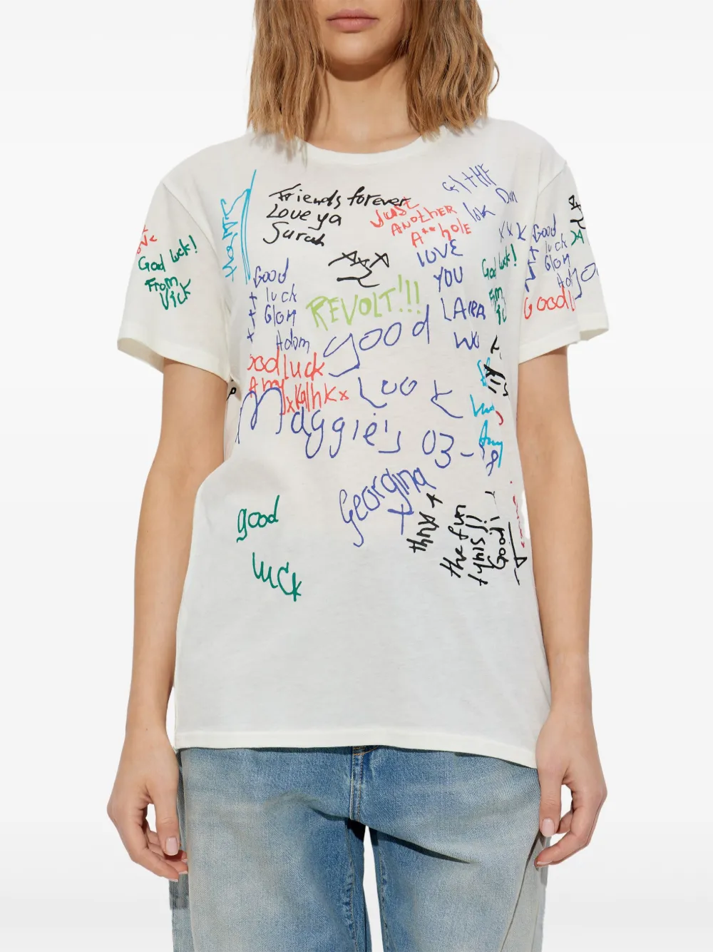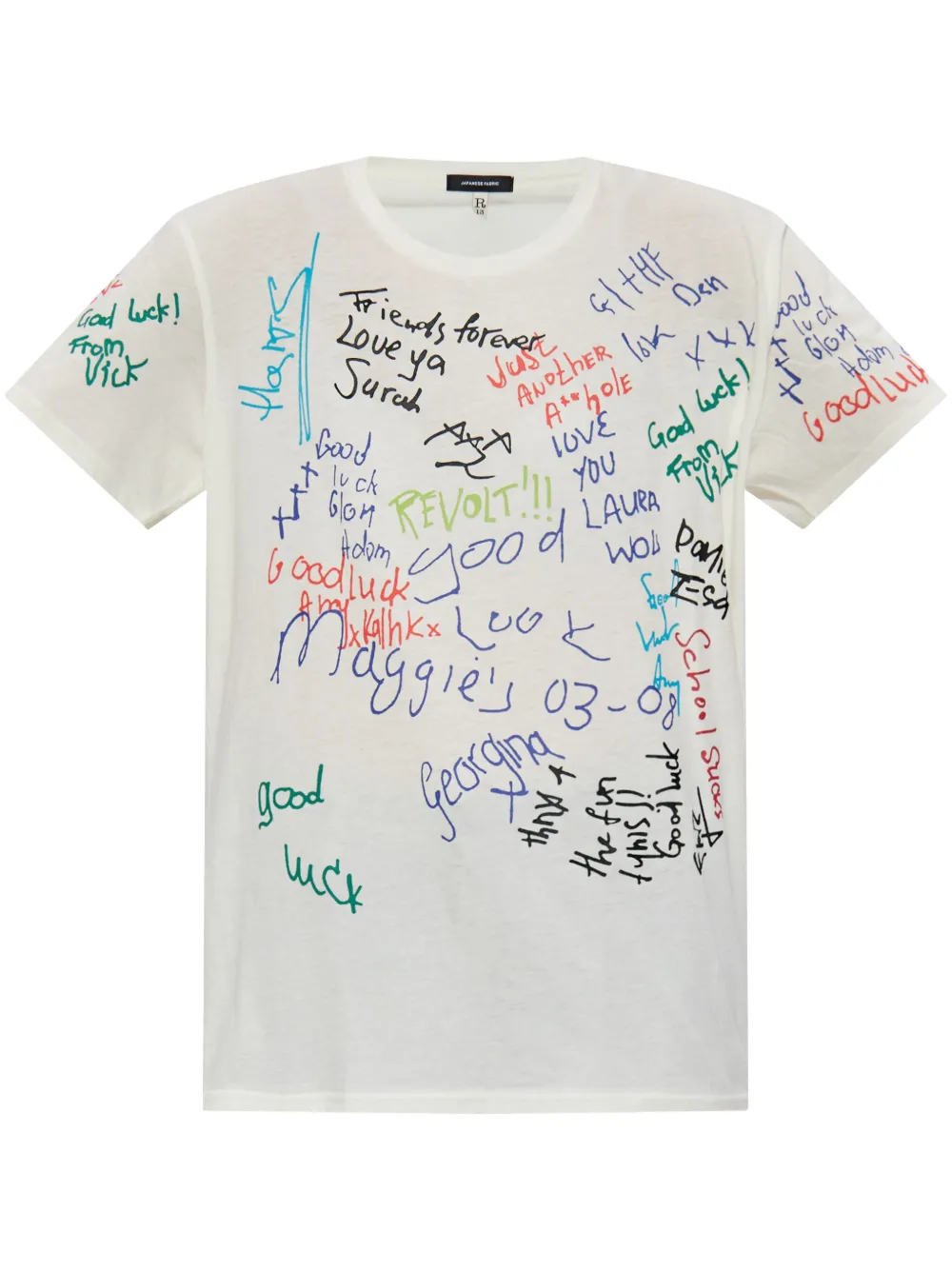 Tricou R13 Text Print alb, din bumbac, cu guler rotund, maneci scurte, grafica text imprimata pe toata suprafata, si tiv drept. Potrivit pentru sezonul primavara/vara. 100% bumbac.