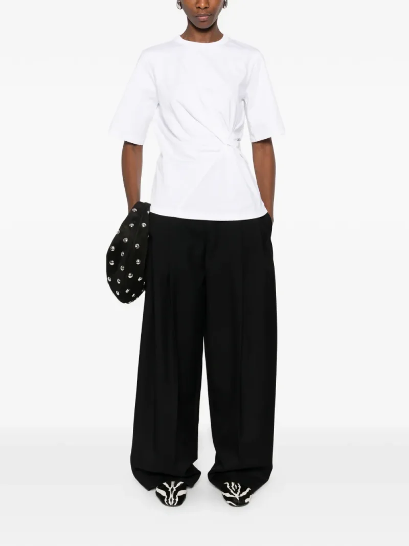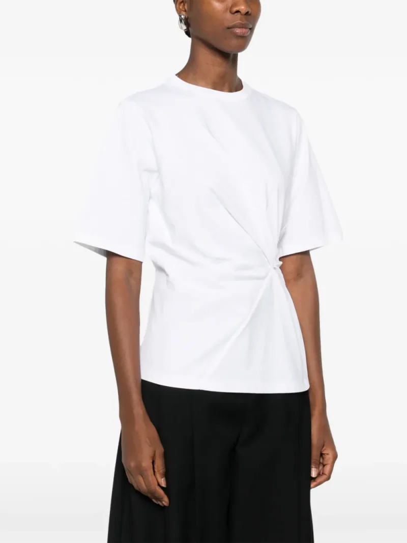 Tricou Rohe Crew-Neck alb, din bumbac, cu guler crewneck, maneci scurte, twist in jurul taliei si tiv drept. Potrivit pt sezonul primavara/vara. 100% bumbac.