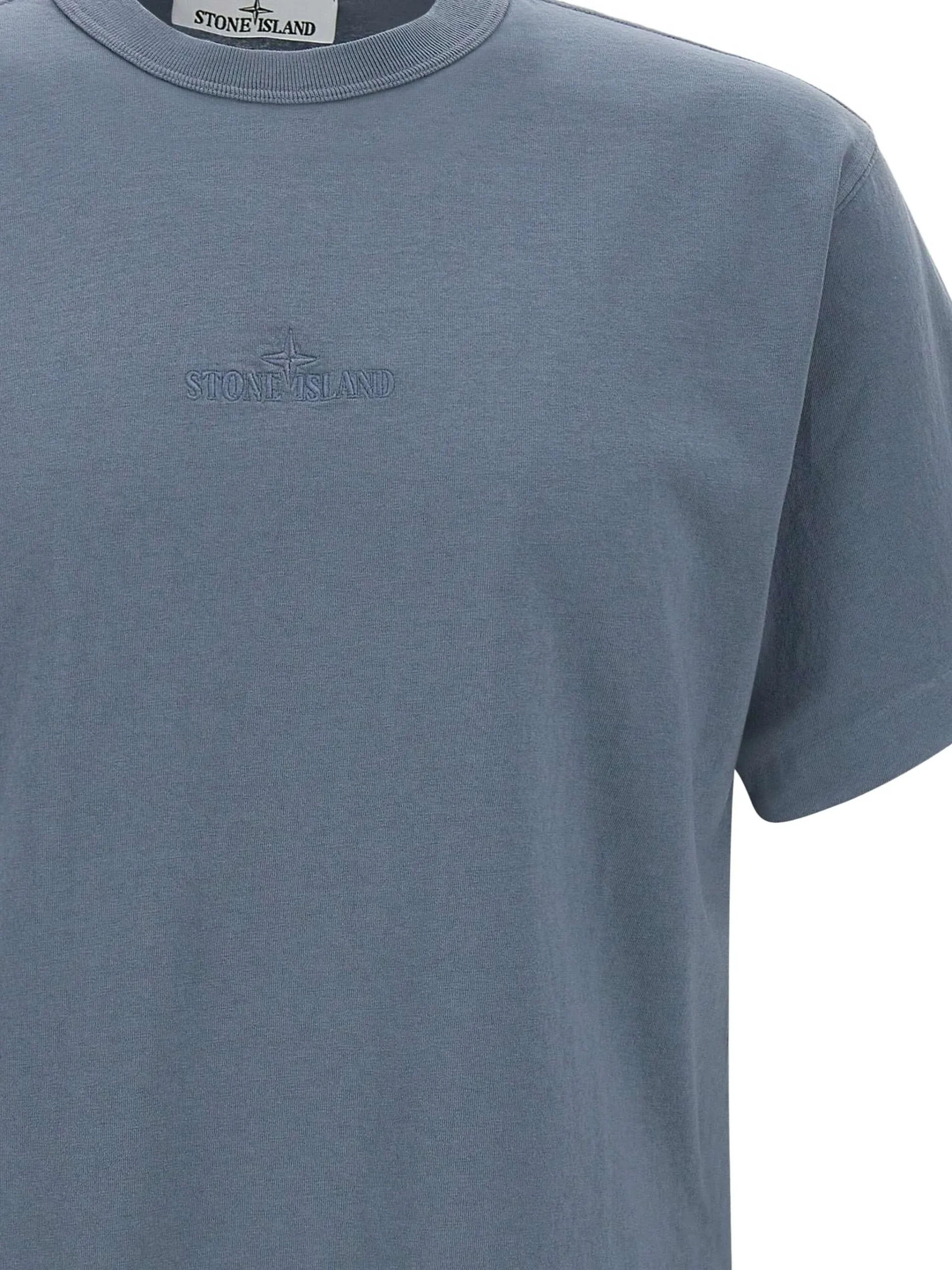 Tricou Stone Island Cotton albastru, guler rotund, maneci scurte, logo brodat pe partea din fata si tiv drept. Potrivit pentru sezonul primavara/vara.100% bumbac
