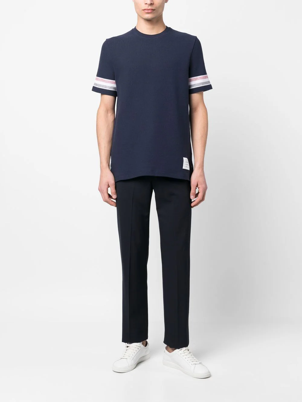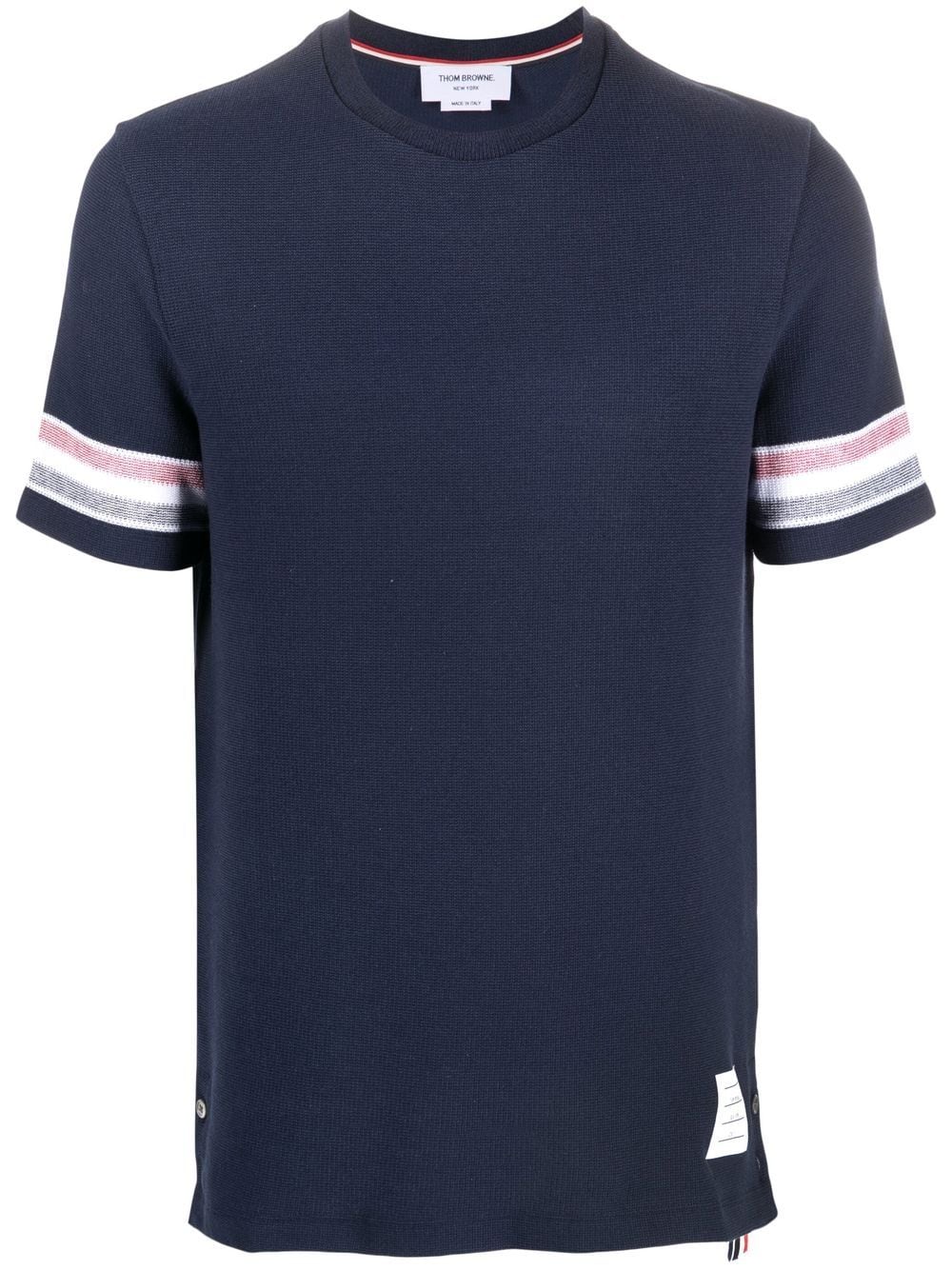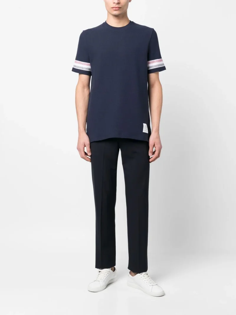 Tricou Thom Browne Tri-Colour Stripe Print bleumarin