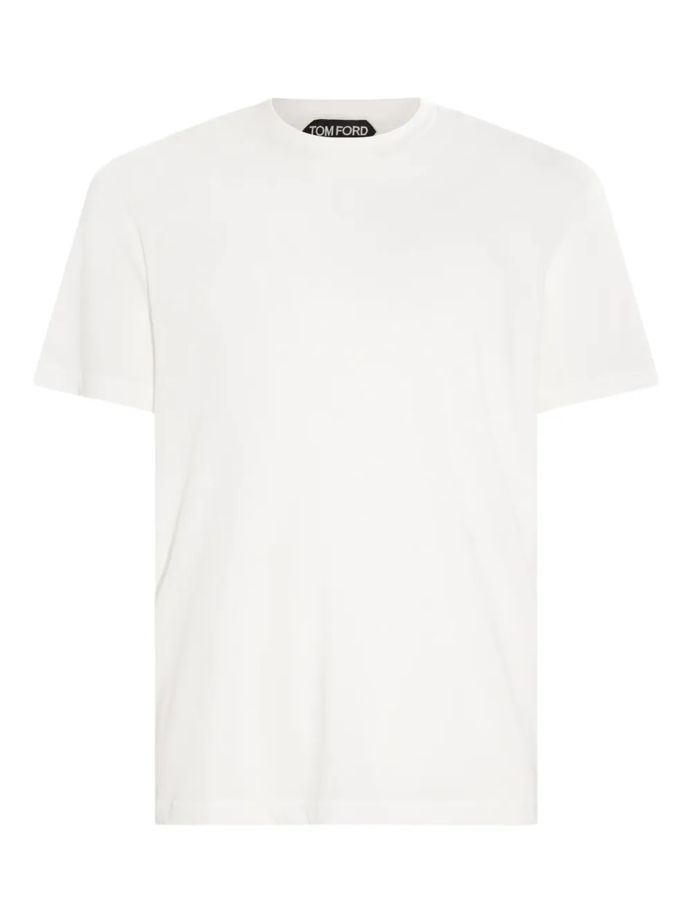 Tricou TOM FORD Crew-Neck alb, din lyocell, cu guler rotund, maneci scurte, eticheta logo pe interior si tiv drept. Potrivit pentru sezonul primavara/vara. 67% lyocell; 33% bumbac.