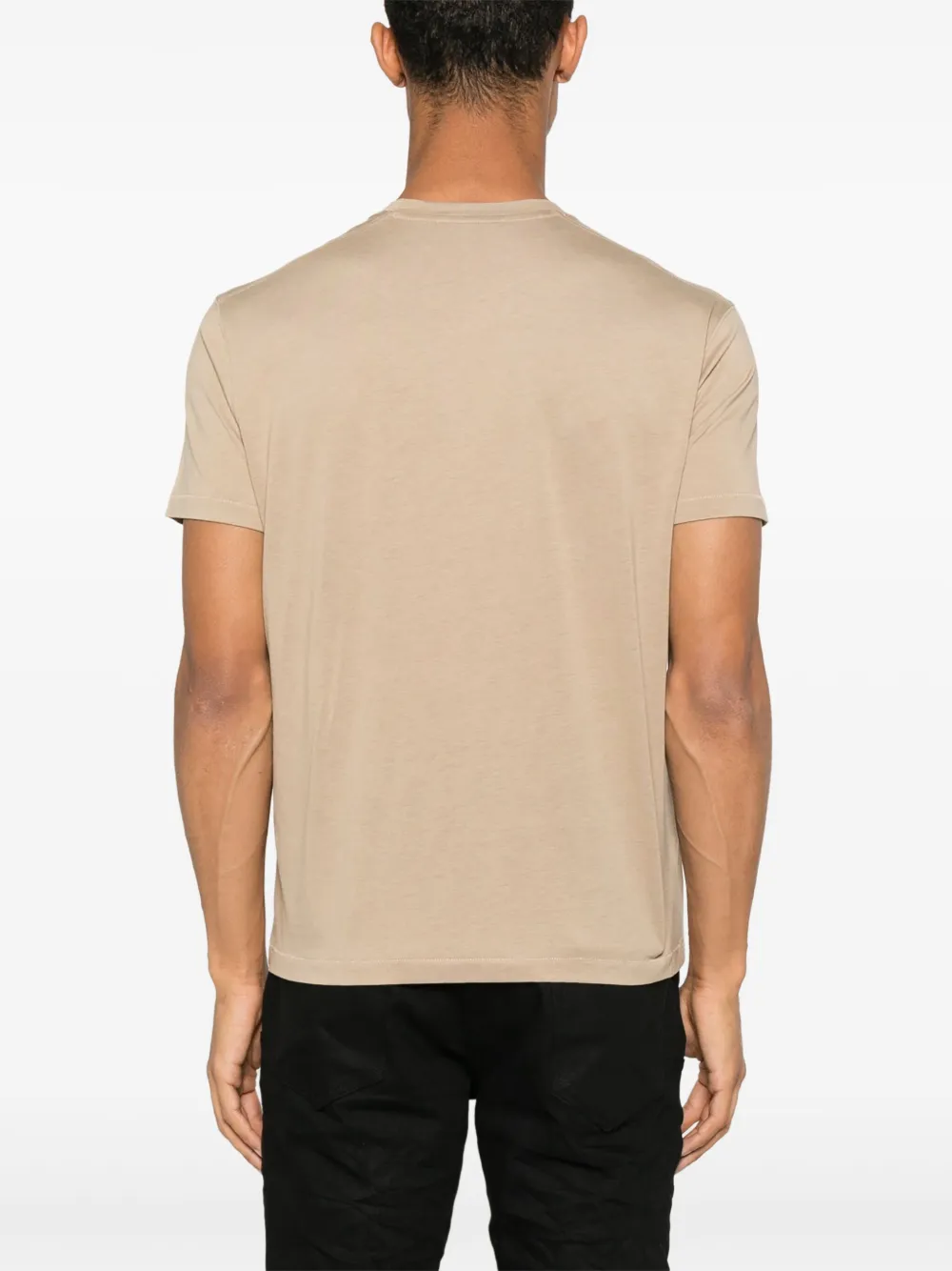 Tricou TOM FORD Crew-Neck bej, cu guler rotund, maneci scurte, eticheta logo pe interior si tiv drept. Potrivit pentru sezonul toamna/iarna. 67% lyocell; 33% bumbac.