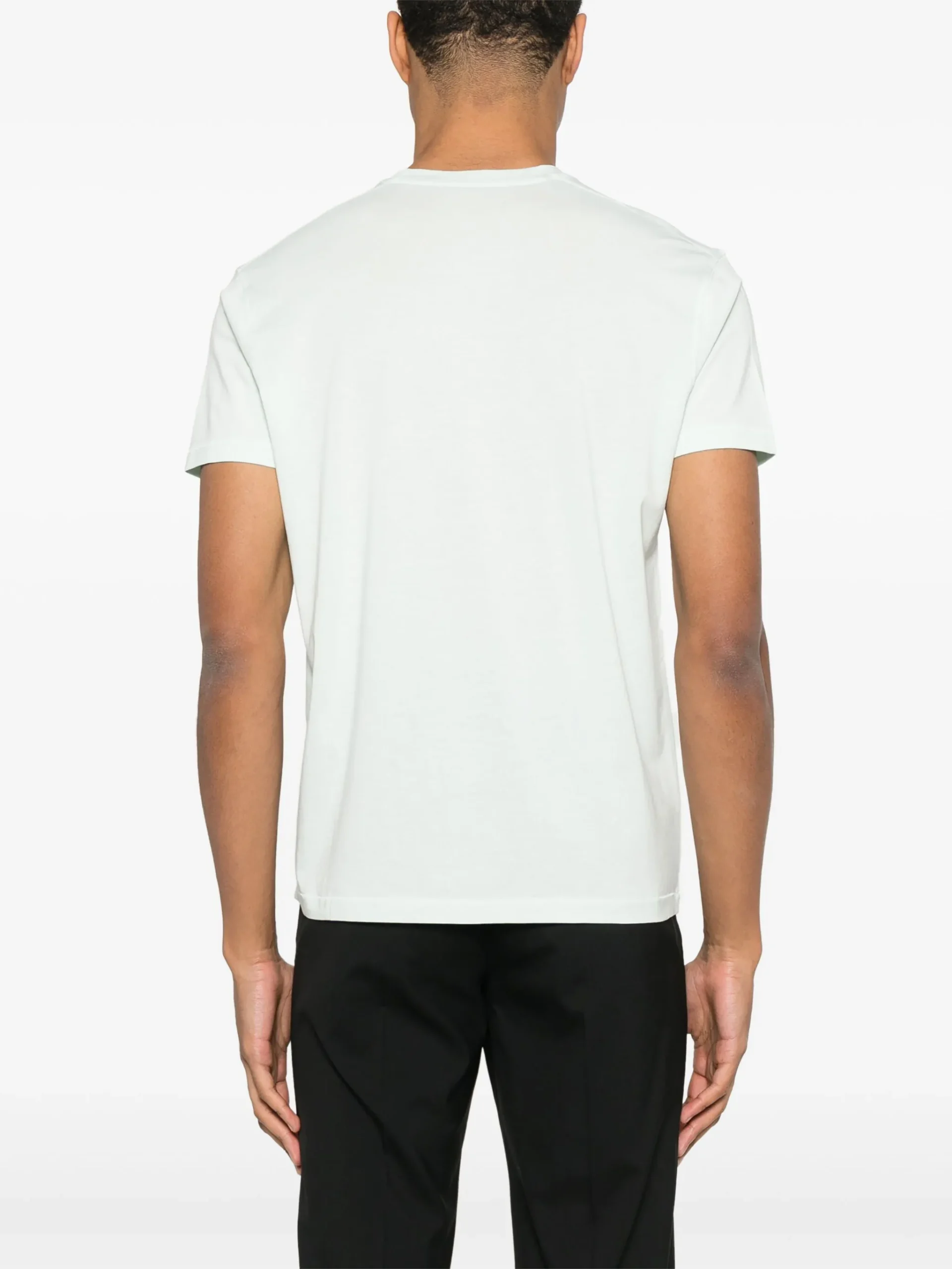 Tricou TOM FORD jersey verde deschis, guler rotund, maneci scurte si tiv drept. Potrivit pentru sezonul primavara/vara. 67% lioncel 33% bumbac