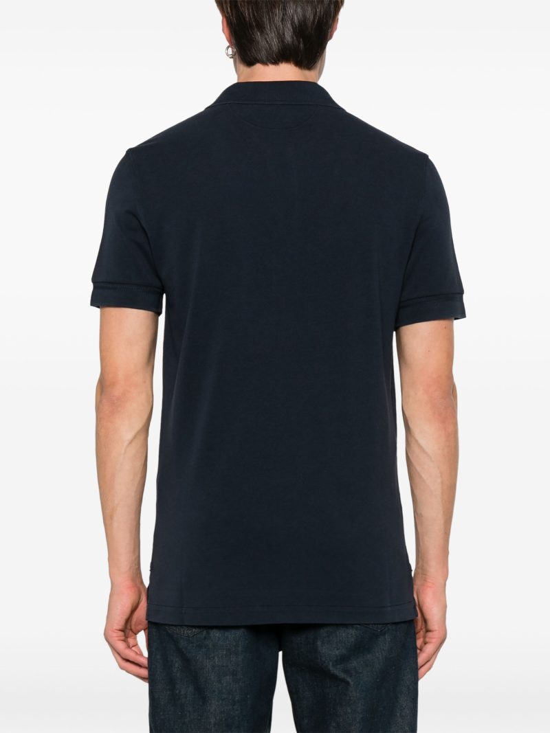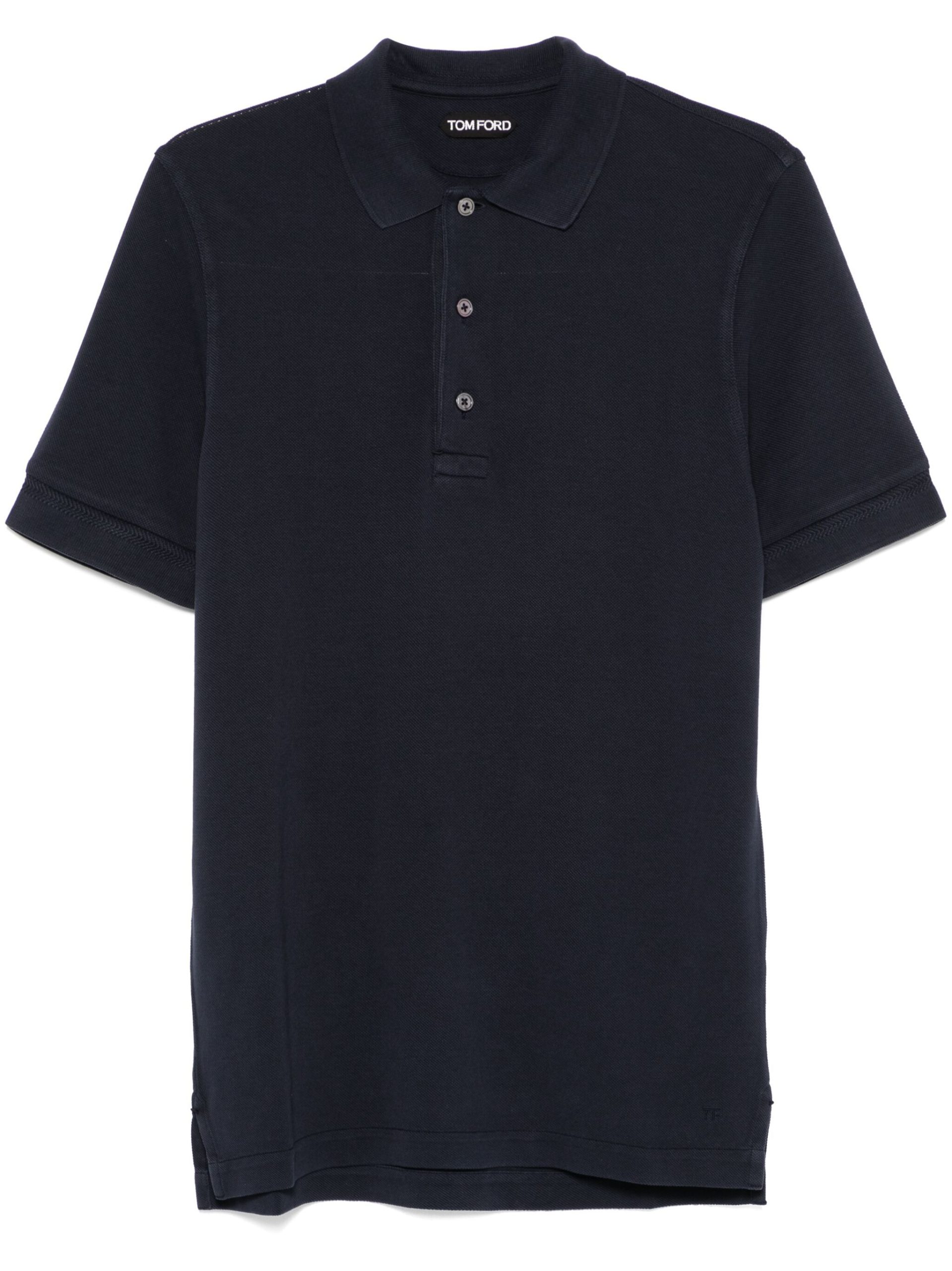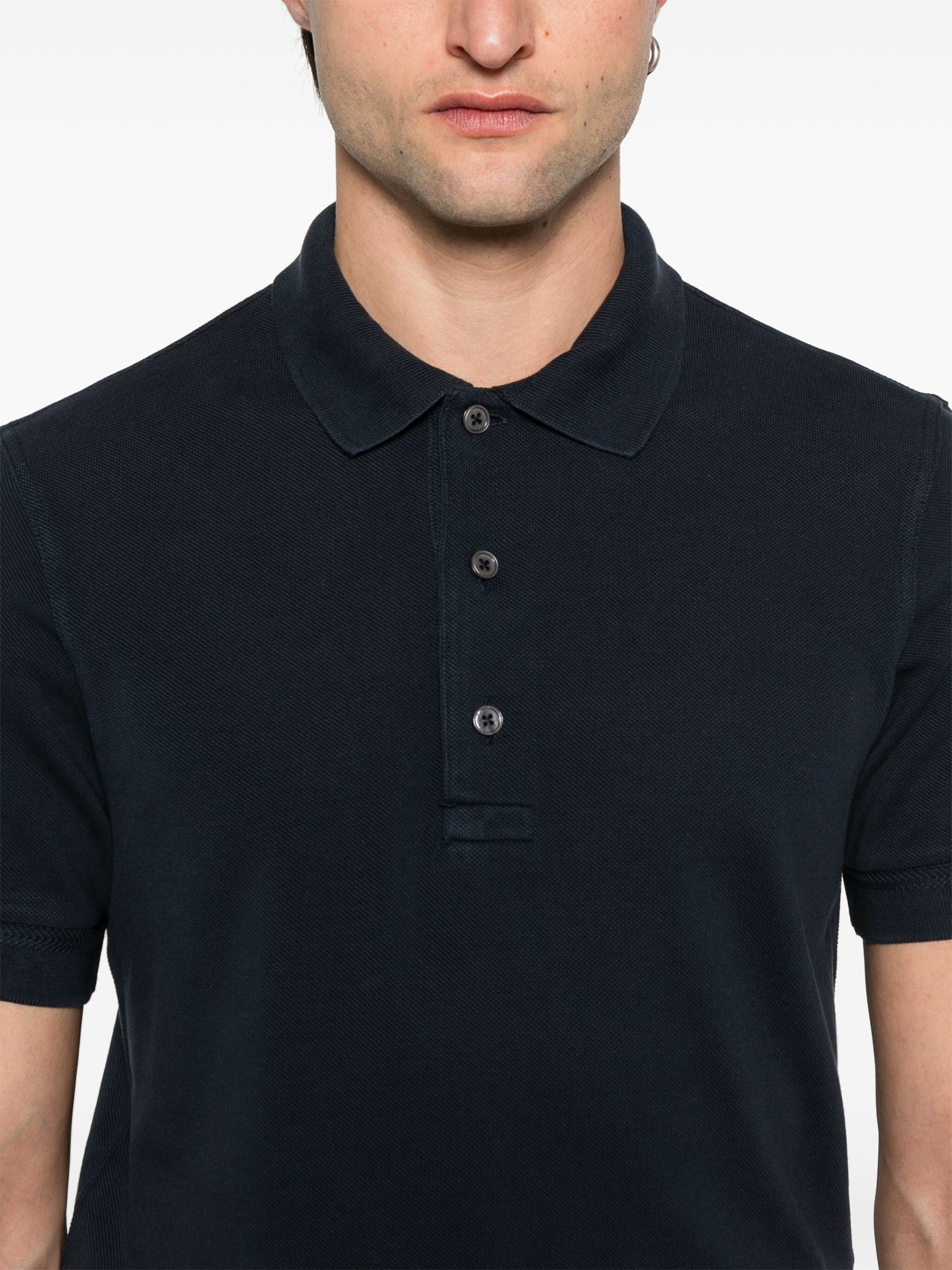 Tricou bleumarin din bumbac, cu guler polo si inchidere cu nasturi, maneci scurte, eticheta cu logo TOM FORD cusuta pe interior si tiv drept. 67% lyocell 33% bumbac