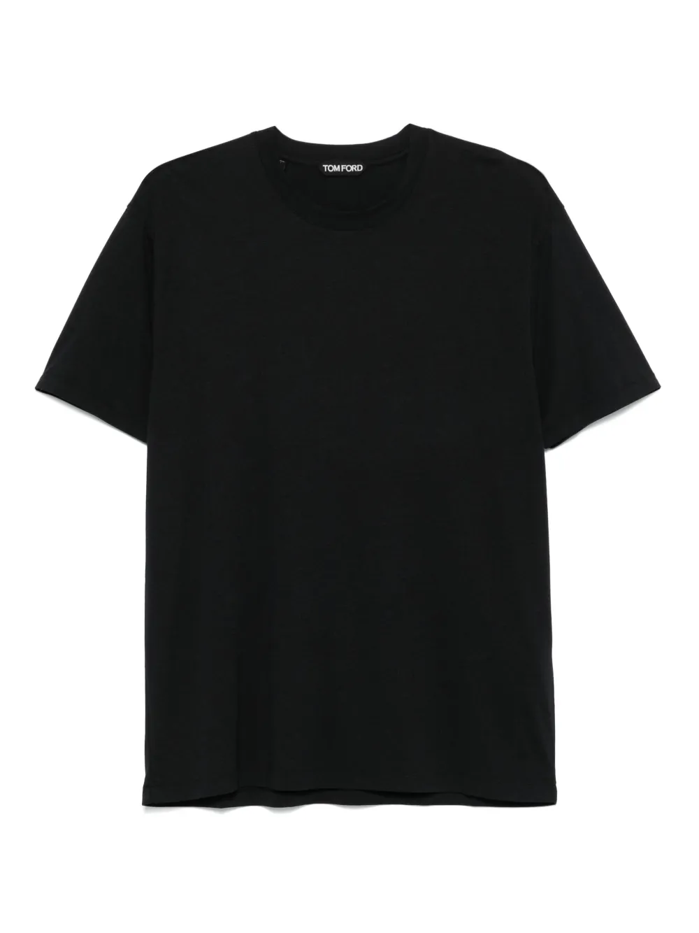 Tricou TOM FORD Short-Sleeved negru, cu guler rotund, maneci scurte, eticheta logo pe interior si tiv drept. Potrivit pentru sezonul toamna/iarna. 67% lyocell; 33% bumbac.