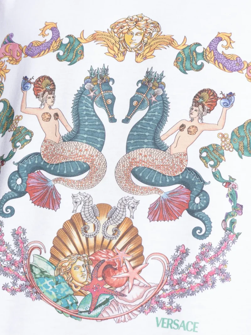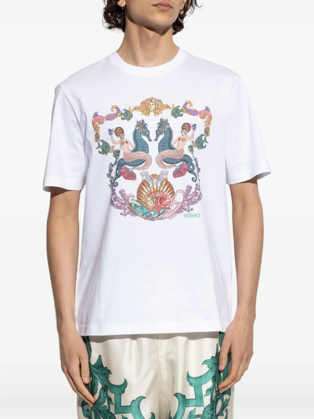 Tricou Versace Medusa Head-print alb, din bumbac, cu guler crewneck, maneci scurte, grafica Medusa Head imprimata si tiv drept. Potrivit pentru sezonul primavara/vara. 100% bumbac.