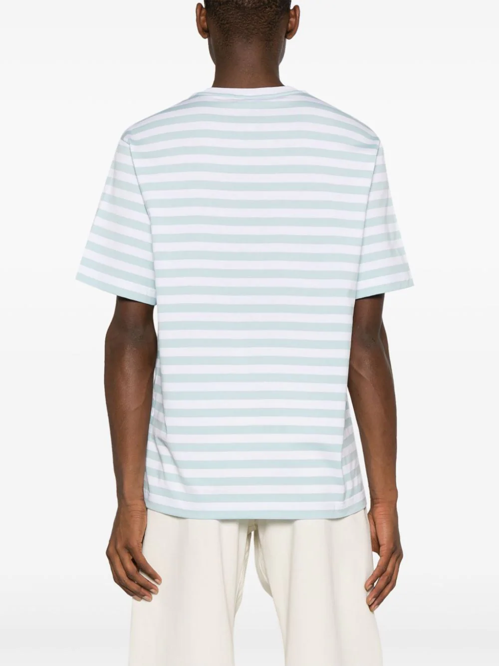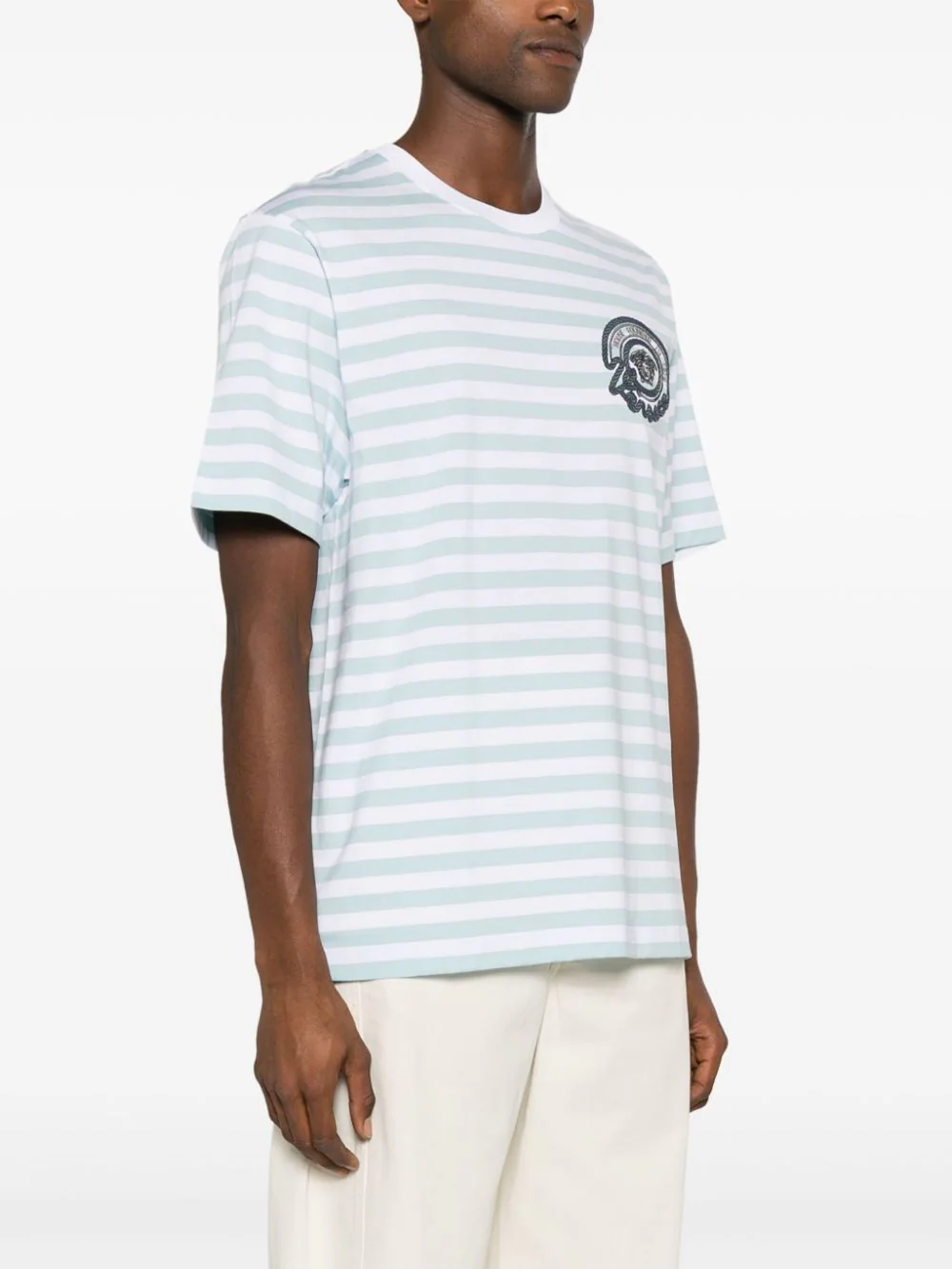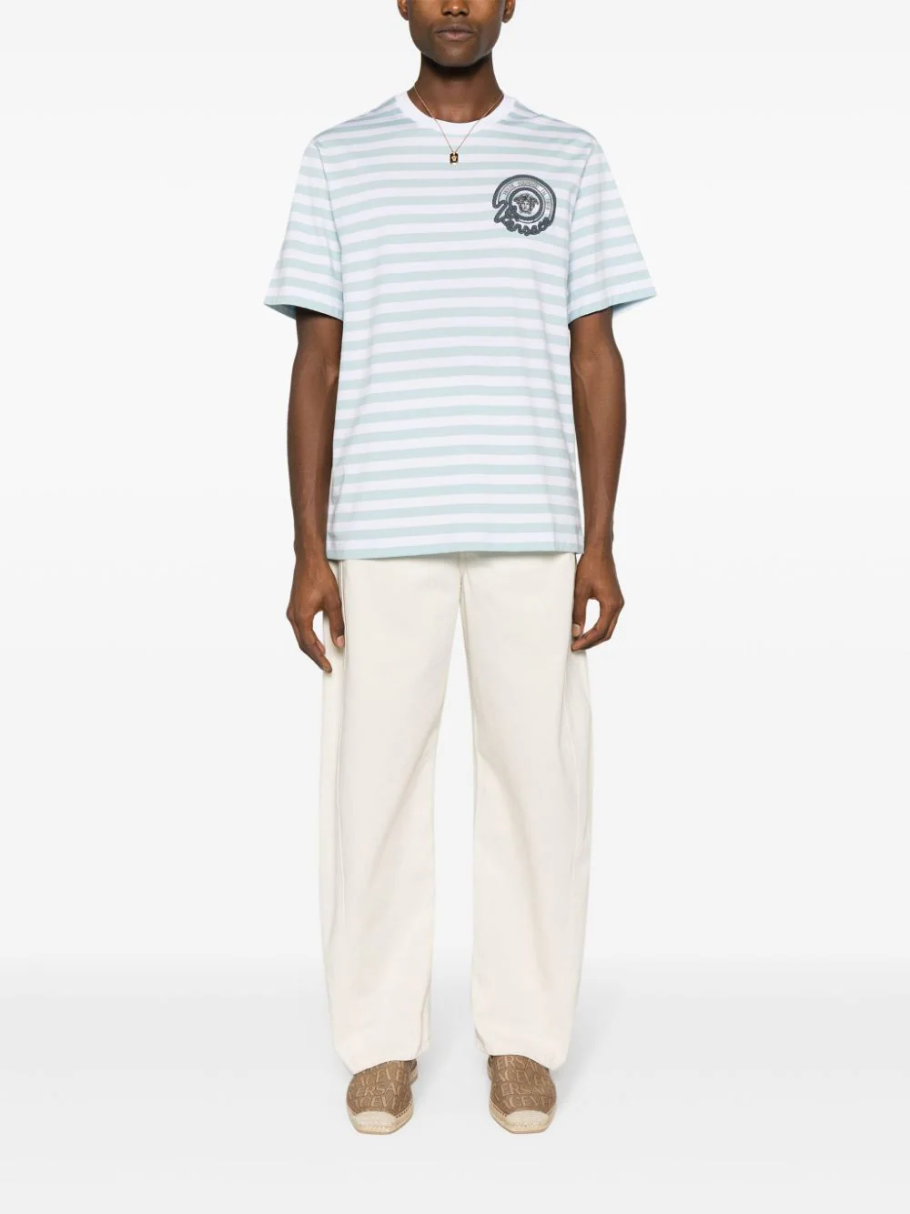 Tricou multicolor din bumbac, cu guler rotund, maneci scurte, logo Versace Medusa brodat la piept, imprimeu cu dungi orizontale si tiv drept. Potrivit pentru sezonul primavara/vara. 100% bumbac; 56% viscoza; 44% poliester; 100% bumbac.