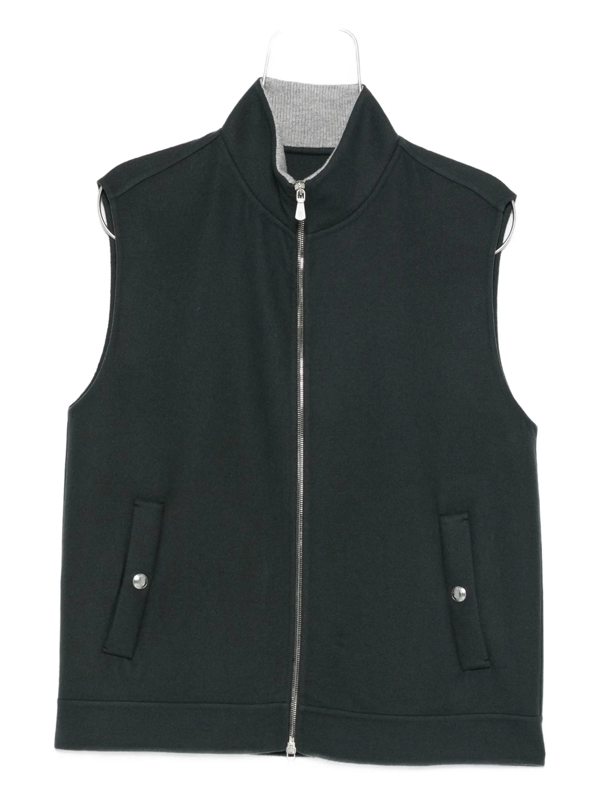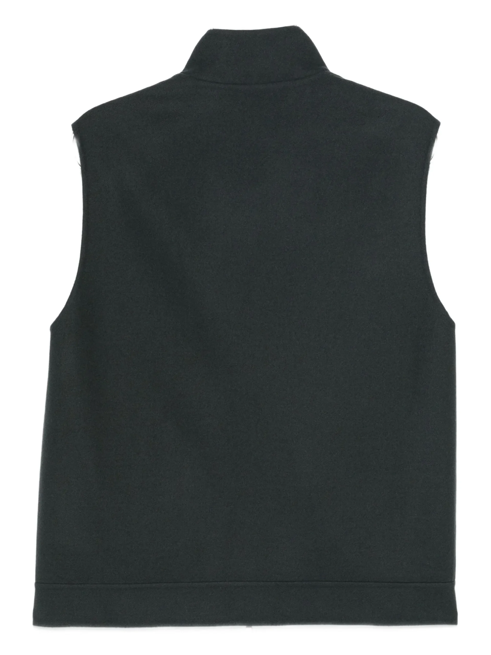 Vesta Eleventy gri inchis, din lana, cu inchidere cu fermoar, guler inalt, buzunare tip welt si detaliu cu nasture. Potrivita pentru sezonul toamna/iarna. 100% lana