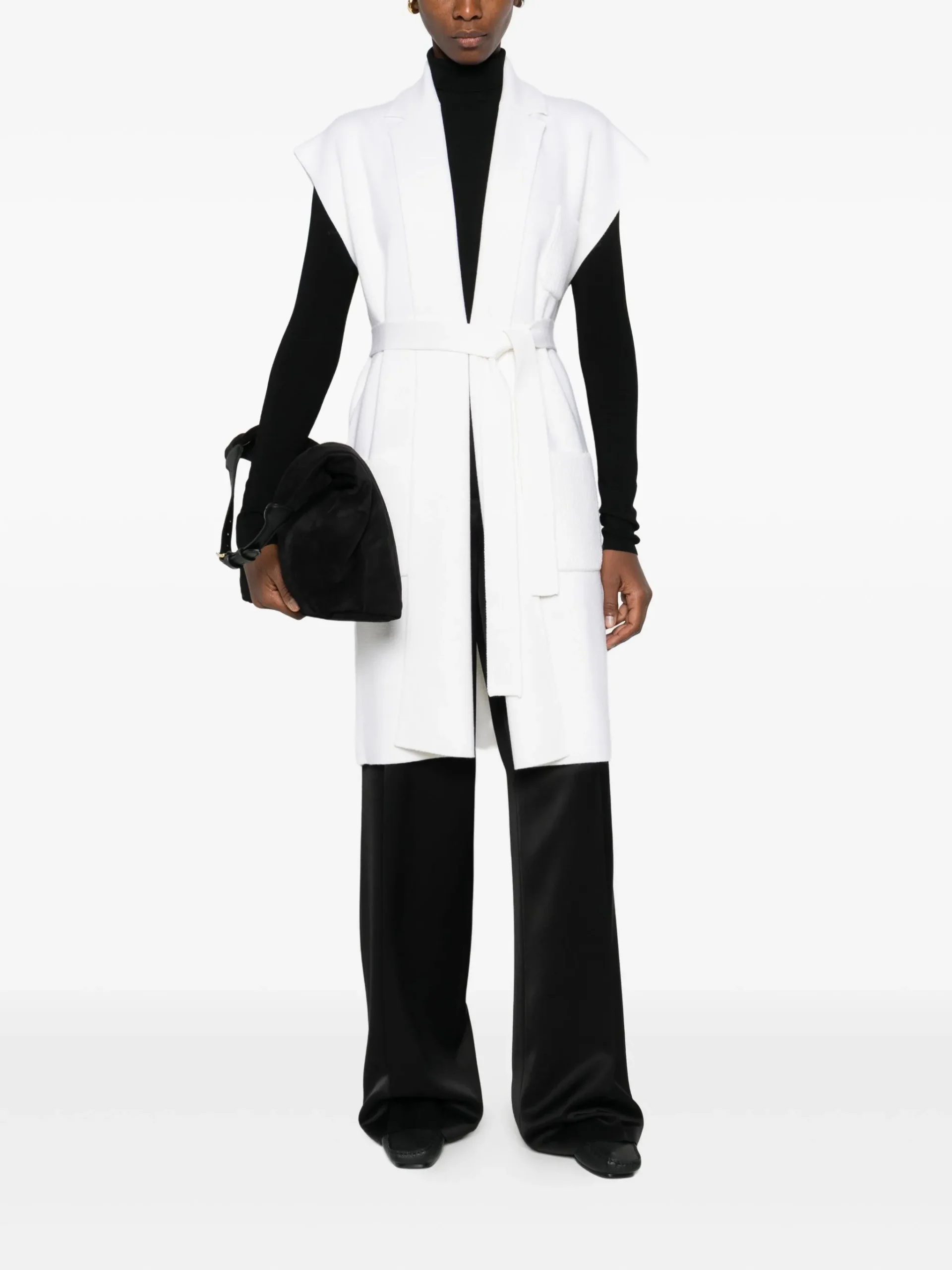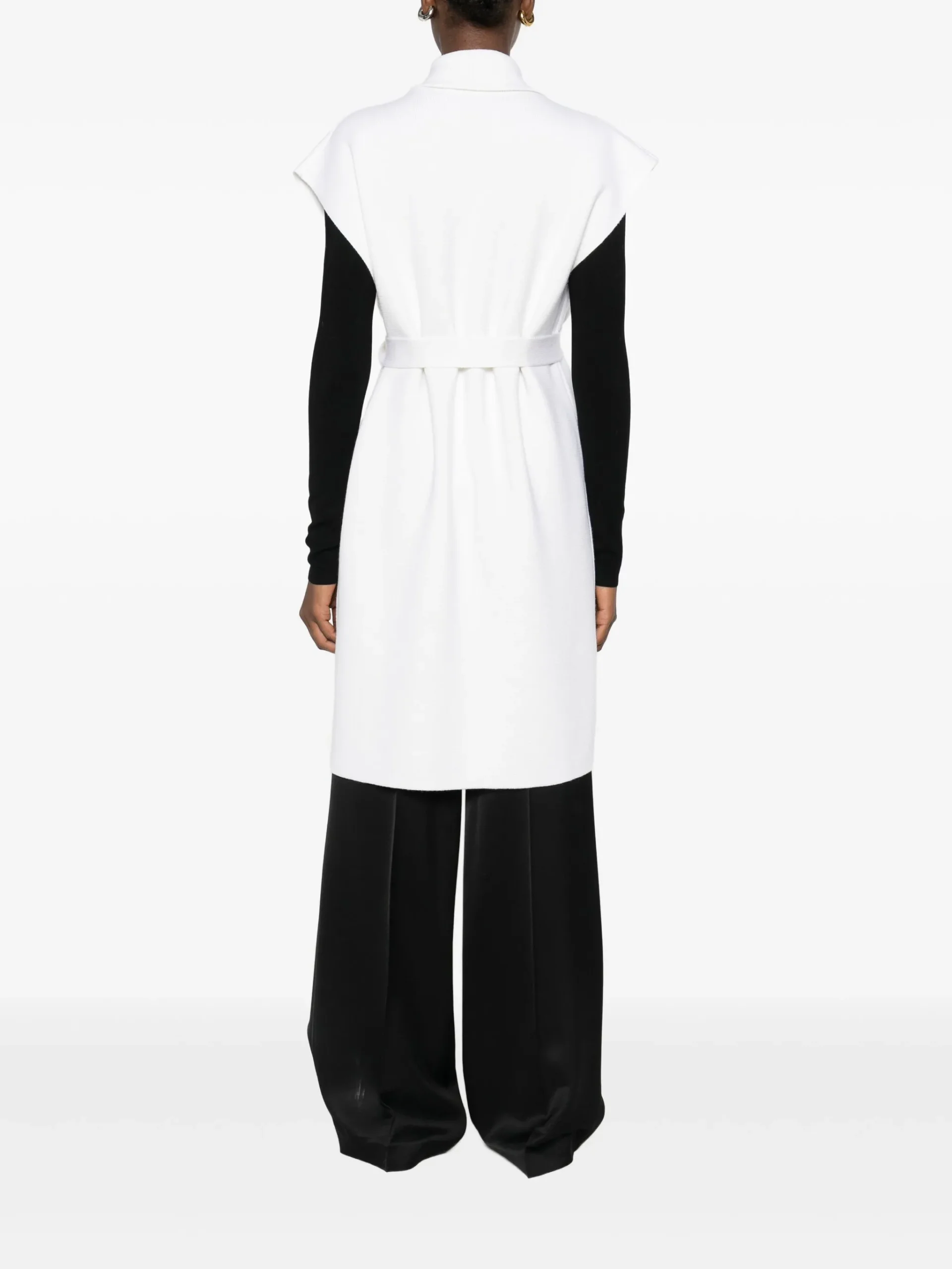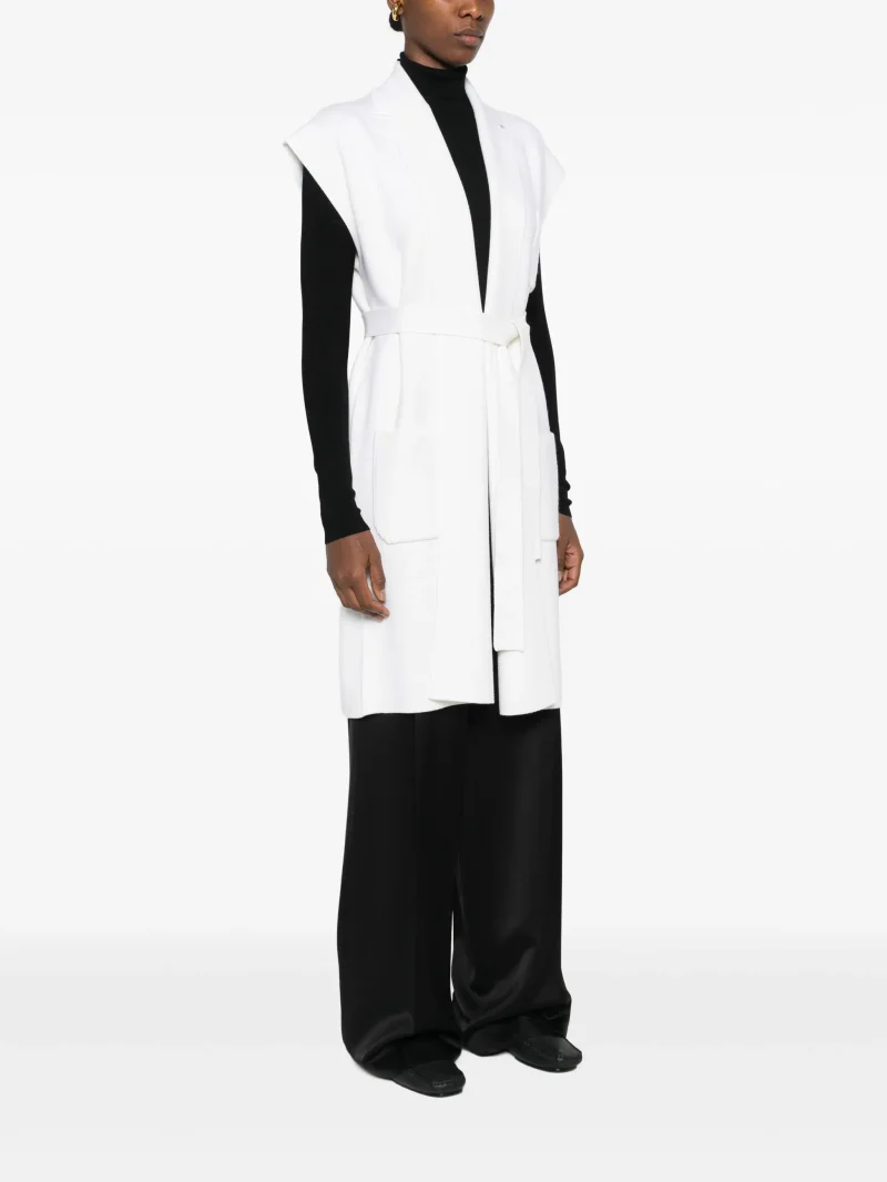 Vesta Gran Sasso belted front-pockets gilet alb, cu design rafinat si detalii tricotate. Model fara maneci, prevazut cu cordon in talie, buzunare frontale cu detalii nervurate si inchidere deschisa pentru un aspect modern si elegant. 100% lana