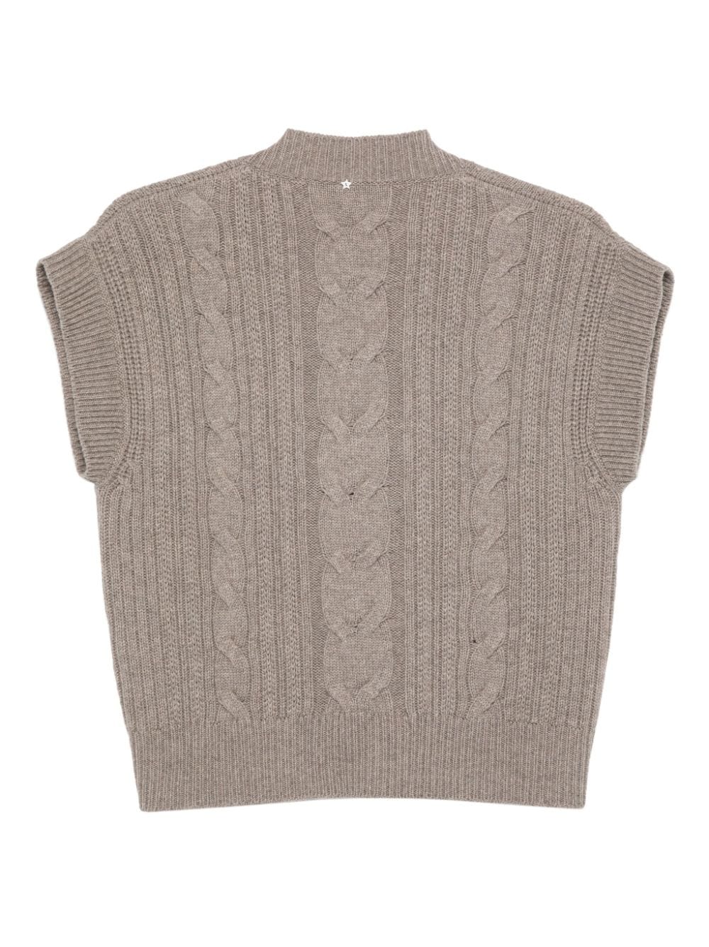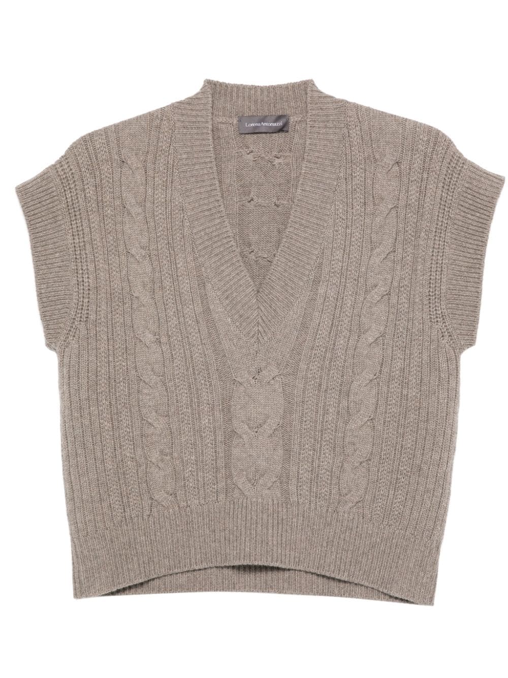 Vesta Lorena Antoniazzi cable-knit maro cu decolteu in V, amestec de lana si tiv elastic. 98% bumbac 2% elastan