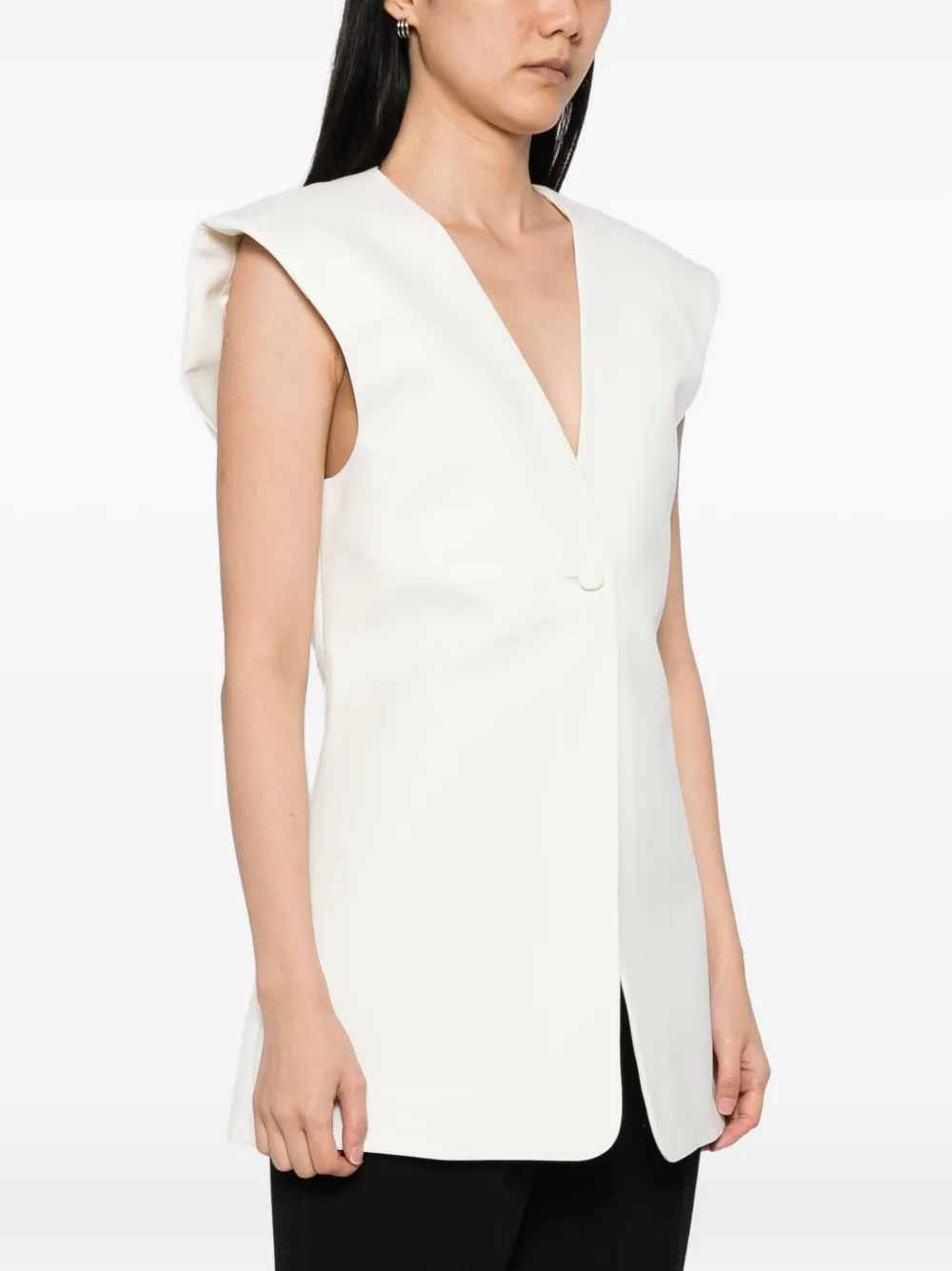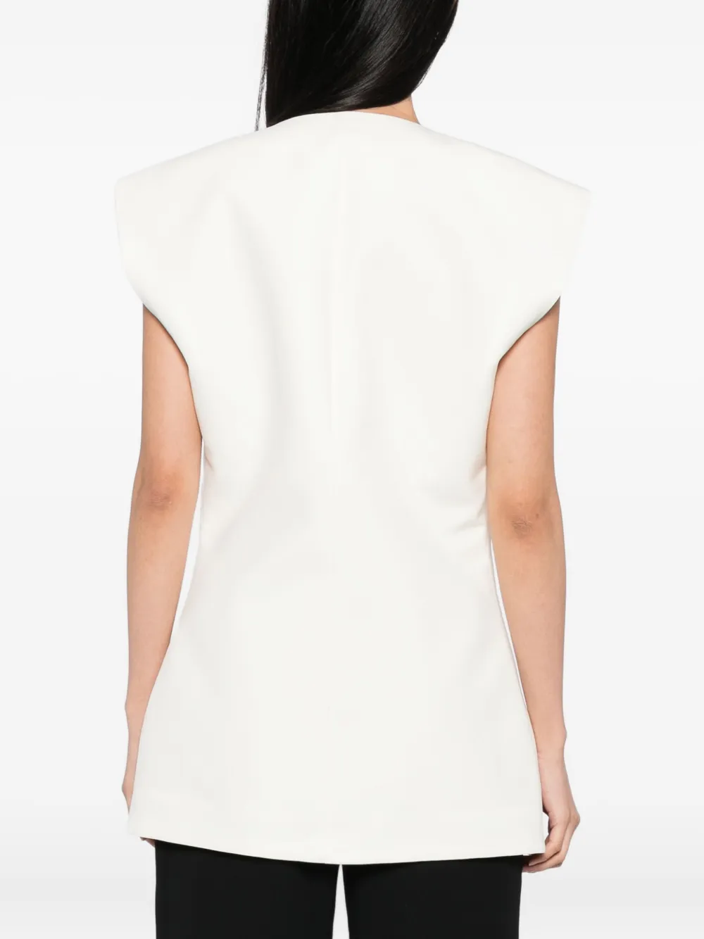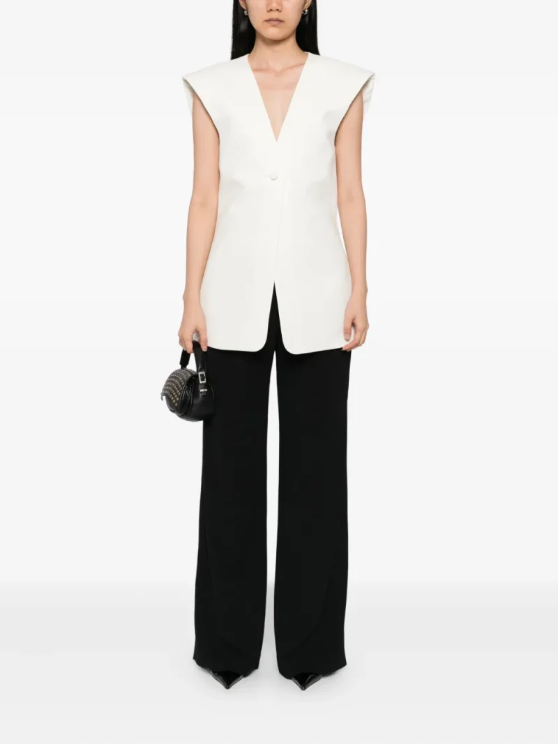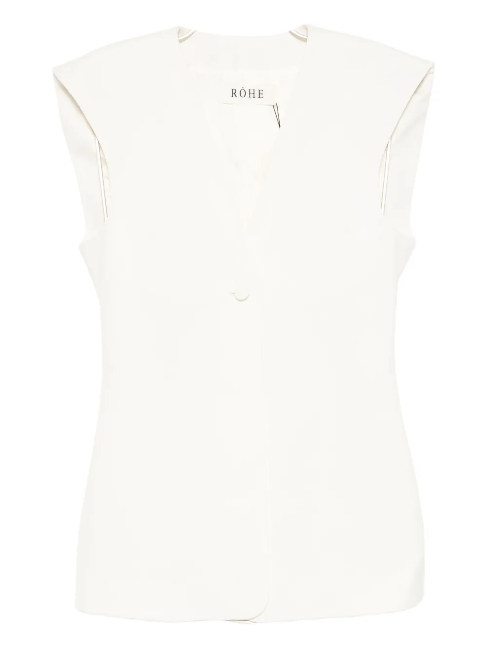 Vesta Rohe Wool Gilet alb, din lana, cu decolteu in V, inchidere cu nasturi captusiti, umeri conturati si tiv drept. Potrivita pentru sezonul toamna/iarna. 100% lana.